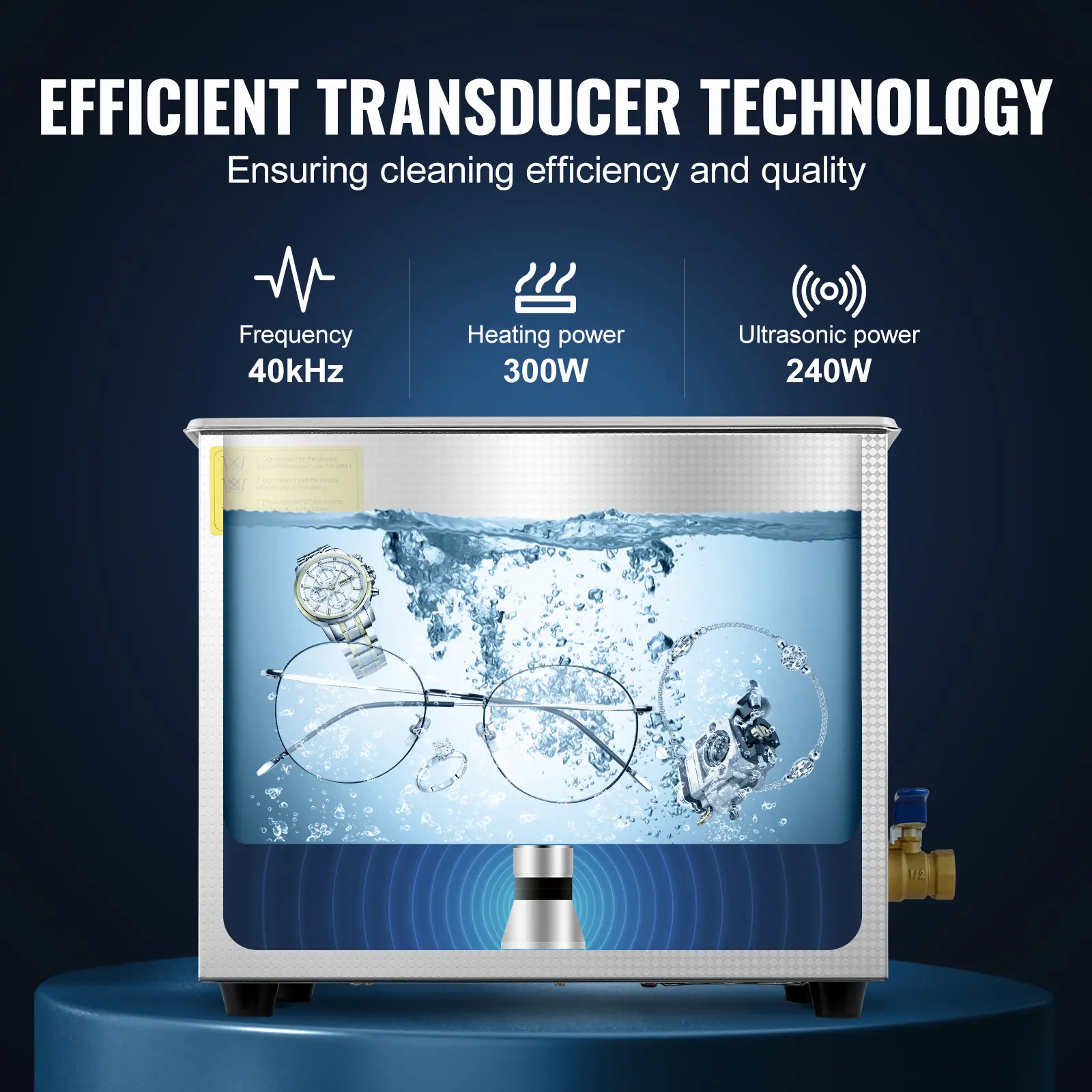 • High-performance Ultrasonic Cleaner: Experience the power of effective cleaning with our professional ultrasonic cleaner. With a 40kHz ultrasonic frequency and heating function, it effortlessly dissolves grease and grime, restoring your items to their original shine and brilliance.