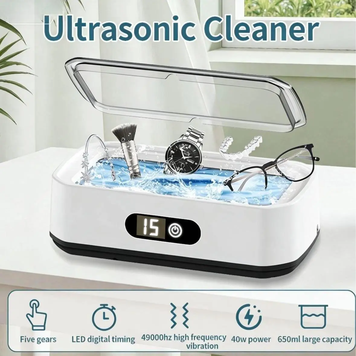 Using 49,000Hz ultrasonic technology, this cleaner generates fine bubbles in water to help lift away oil, sweat, and daily buildup from small gaps and surfaces.