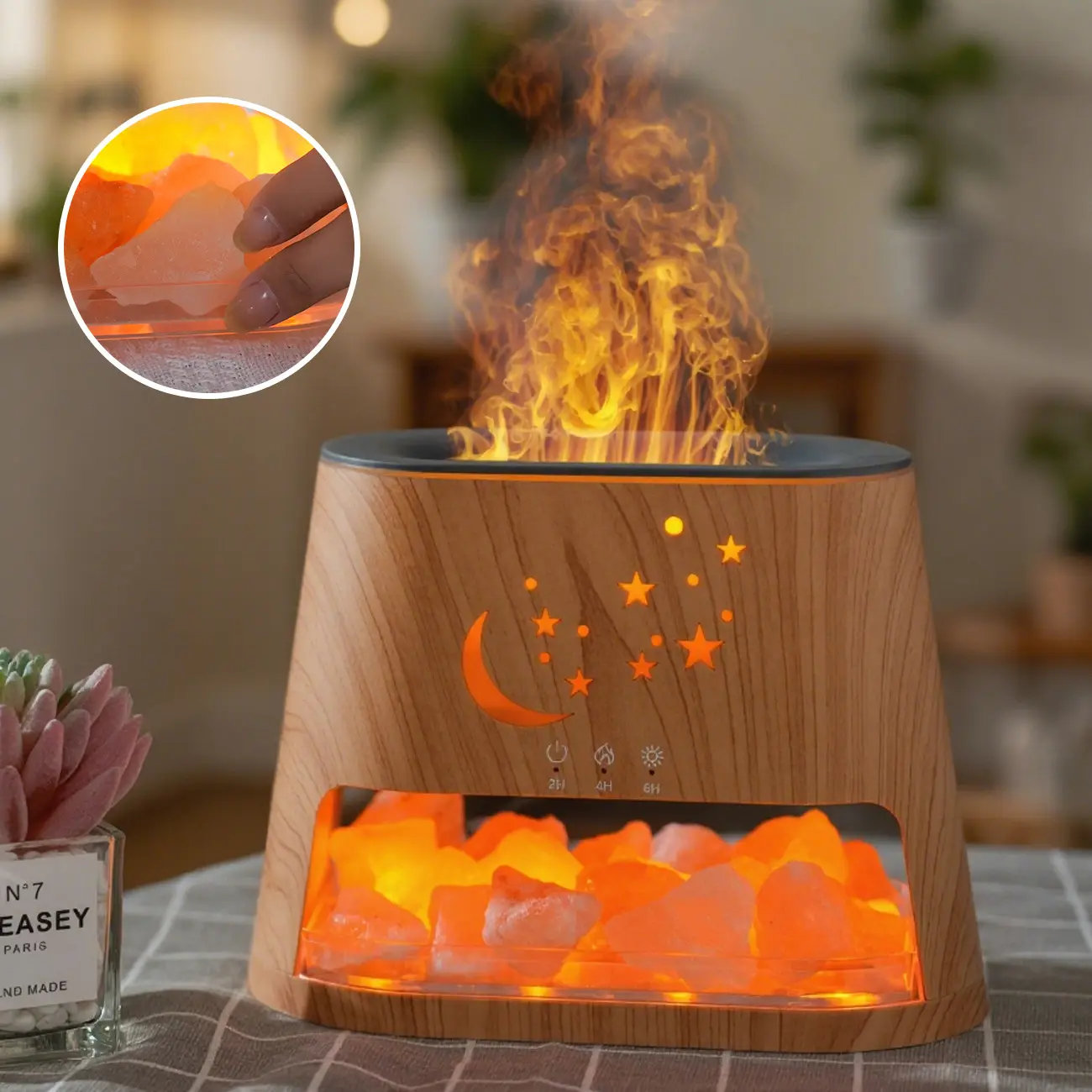 Elegant Star & Moon Cut-Out Design: Designed with a beautiful hollow moon and star pattern that projects light in a stunning celestial display. The outer shell is finished with a stylish wood grain texture, blending natural aesthetics with functional elegance.
