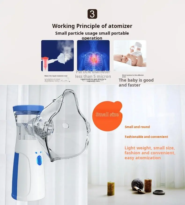·Rechargeable Nebulizer - The new upgraded ultrasonic nebulizer doesn't need to put in batteries, just connect the USB cable, and unplug the USB cable after the nebulizer is fully charged. You can use it anytime and anywhere, no need to look around for battery plugs.
