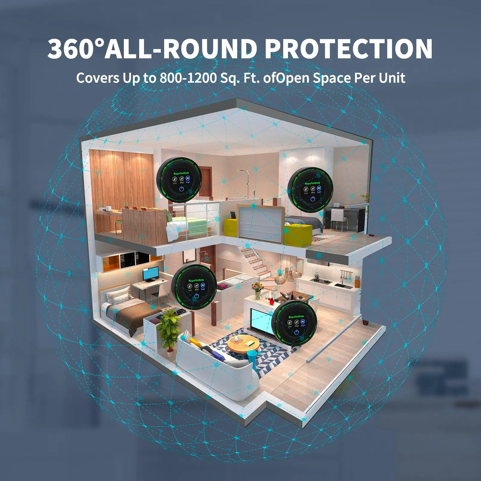 🏠 Covers up to 1600 sq. ft. Perfect for bedrooms, kitchens, offices, basements, garages, attics, and warehouses. For optimal results, place one device per room at 10–50 inches above the floor.