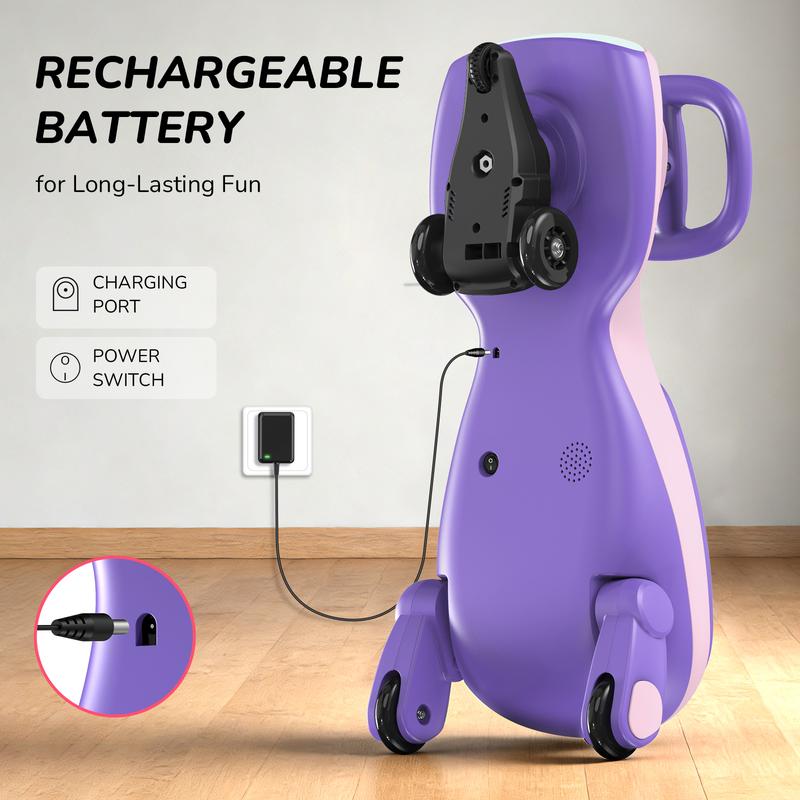 The electric mode makes riding effortless—simply step on the pedal to move forward. The manual mode helps exercise balance and coordination. Two speed options: low speed at 1.9 mph and high speed at 4 mph. 🏎️