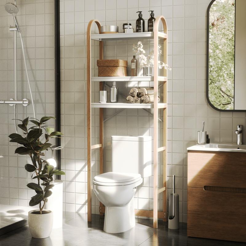 ·Space-Saving Storage Solution: Bellwood Over the Toilet Shelf features three wooden tiers and three dowels for elevated storage; holds 13kg (29lbs) per shelf.