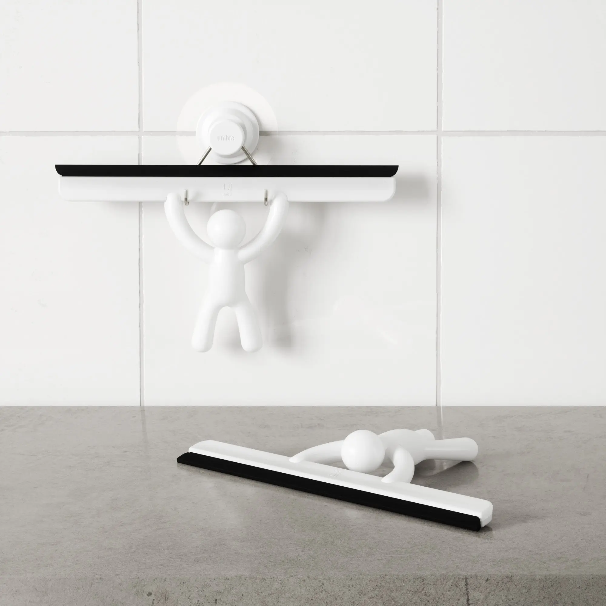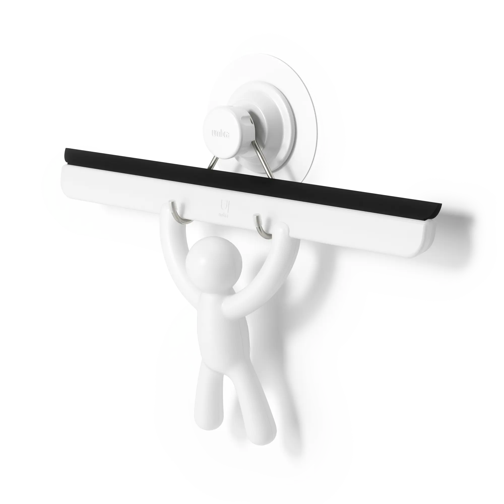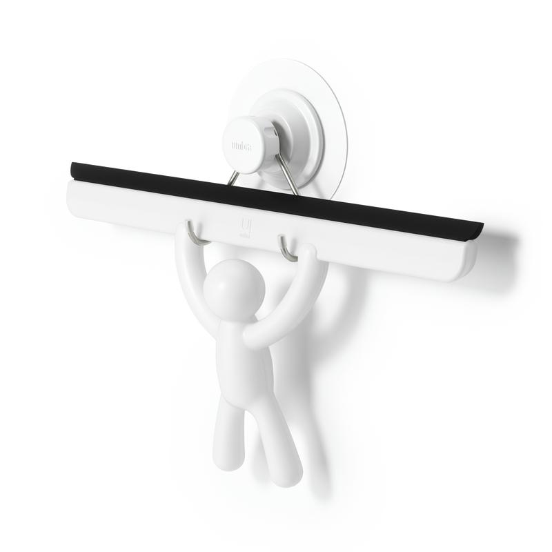 The Umbra Buddy Adhesive Squeegee is designed to make cleaning enjoyable. With its playful figurine design and effective, flexible silicone blade, this squeegee efficiently removes soap scum, fog, and general buildup from glass surfaces and mirrors.