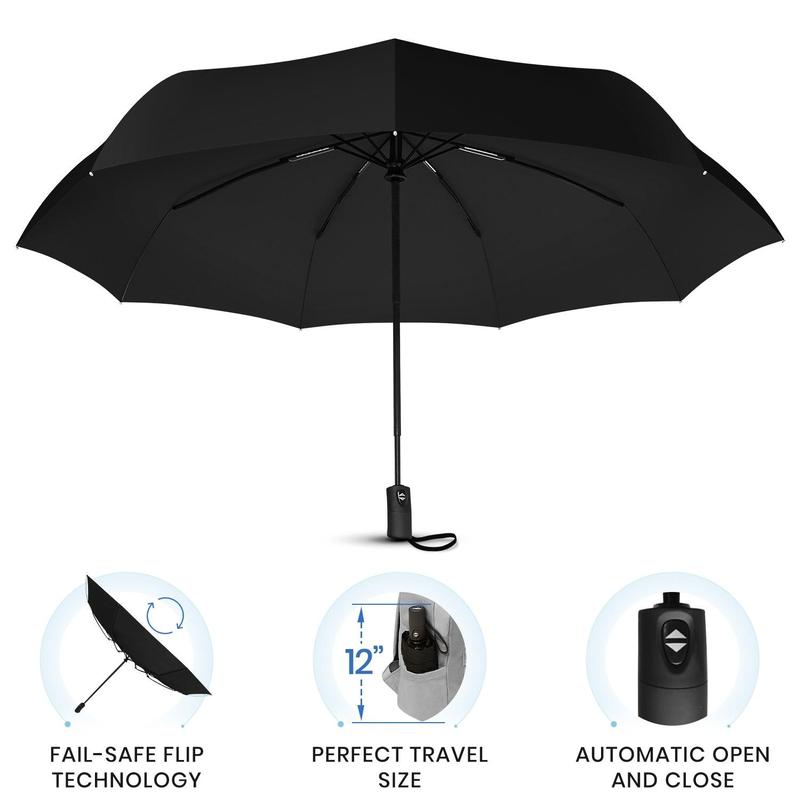 ·FAIL-SAFE FLIP TECHNOLOGY - Our virtually indestructible weatherproof canopy survives super strong gusts of wind because the fiberglass hinges are equipped with a fail-safe technology that will invert the canopy but will not cause the ribs to bend or break. Unlike a cheap compact umbrella, our heavy duty windproof umbrellas are ready for whatever Mother Nature brings.