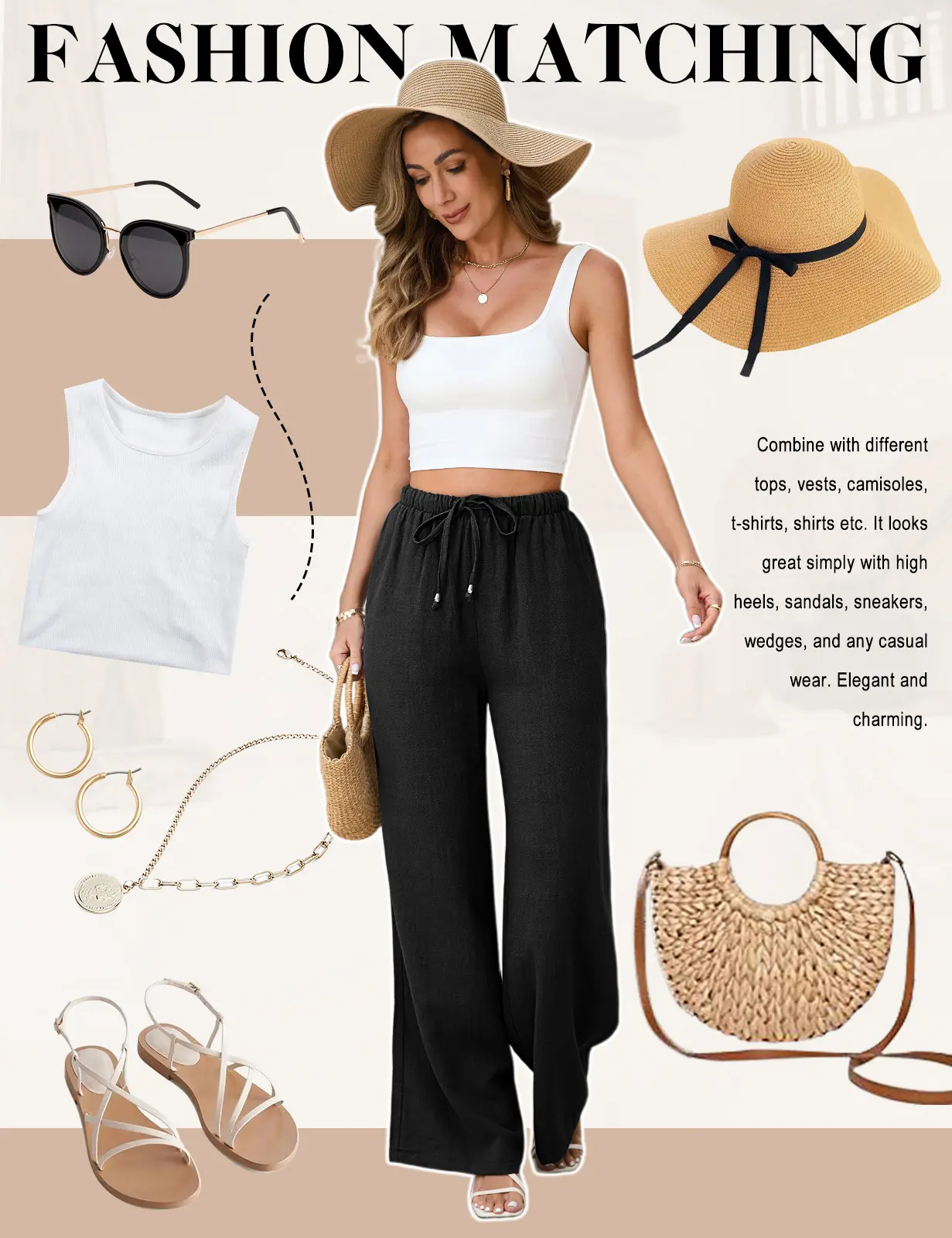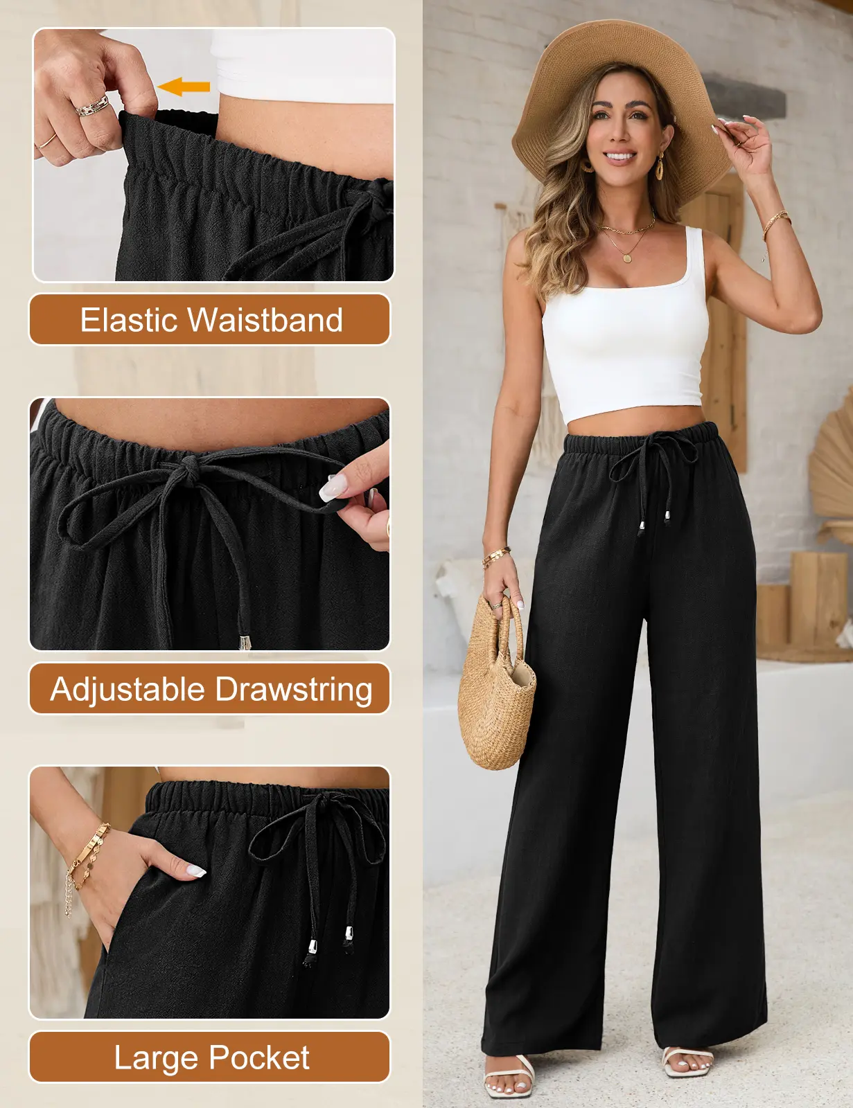 5. UMIPUBO Shop Womens Linen Pants Casual Wide Leg Pants Summer Palazzo Pants Loose Flowy Beach Pants Drawstring Elastic Trousers Womenswear Womenswear