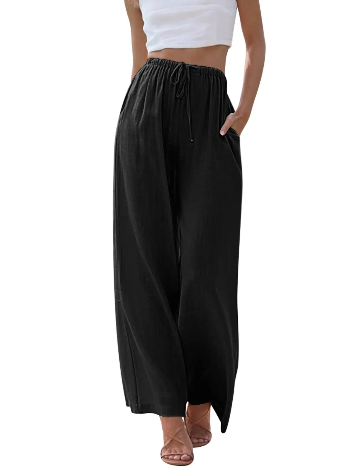 UMIPUBO Shop Womens Linen Pants Casual Wide Leg Pants Summer Palazzo Pants Loose Flowy Beach Pants Drawstring Elastic Trousers Womenswear Womenswear