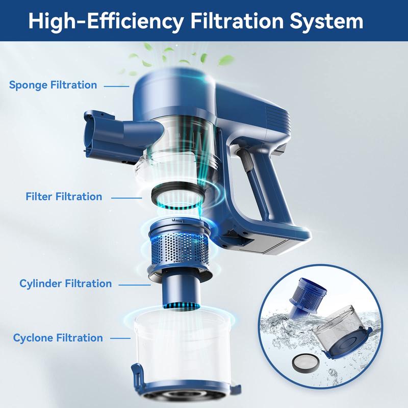 【Lightweight & Multiple Accessories for Versatile Cleaning】Weighing only 2.2 lbs(main motor), the vacuum cleaners for home is extremely lightweight and easy to maneuver. It comes with multiple accessories and an extendable tube, making it versatile enough to clean any surface, from floors and carpets to cars, furniture, curtains, and sofas. Its compact size and lightweight design make the lightweight cordless vacuum suitable for floor-to-ceiling cleaning in homes, apartments, RVs, and dorms
