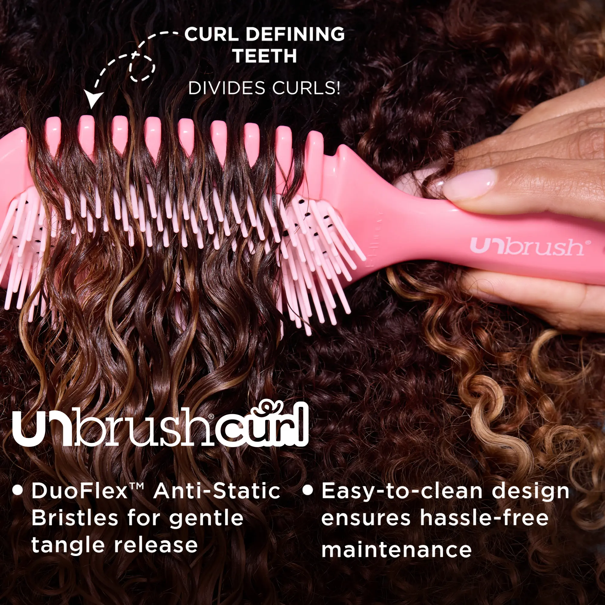 I have coarse, thick, curly, 3a-3c hair type and this brush is so much better than my bounce brush. The bristles on the UNbrush detangle and clump my curls so much better. The width of the notches are also wider making much better curl clumps for me. This brush is also way easier to clean!