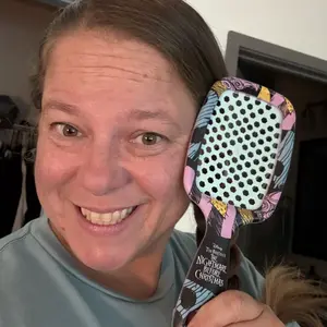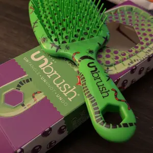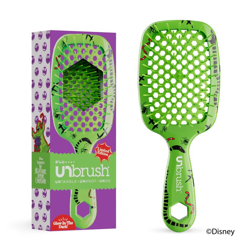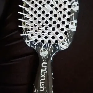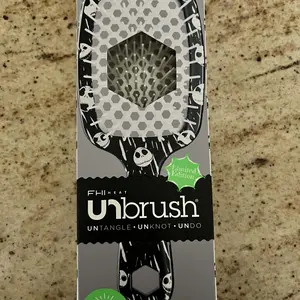UNbrush - Disney Tim Burton's The Nightmare Before Christmas Unbrush gently yet thoroughly extracts knots and tangles from even the most unruly hair, painlessly and effortlessly. Featuring the perfect blend of 105 dual length bristles, combined with an ultralight high performance handle, UNbrush helps reduce styling time and prevents hair from catching. Great for wet or dry hair.