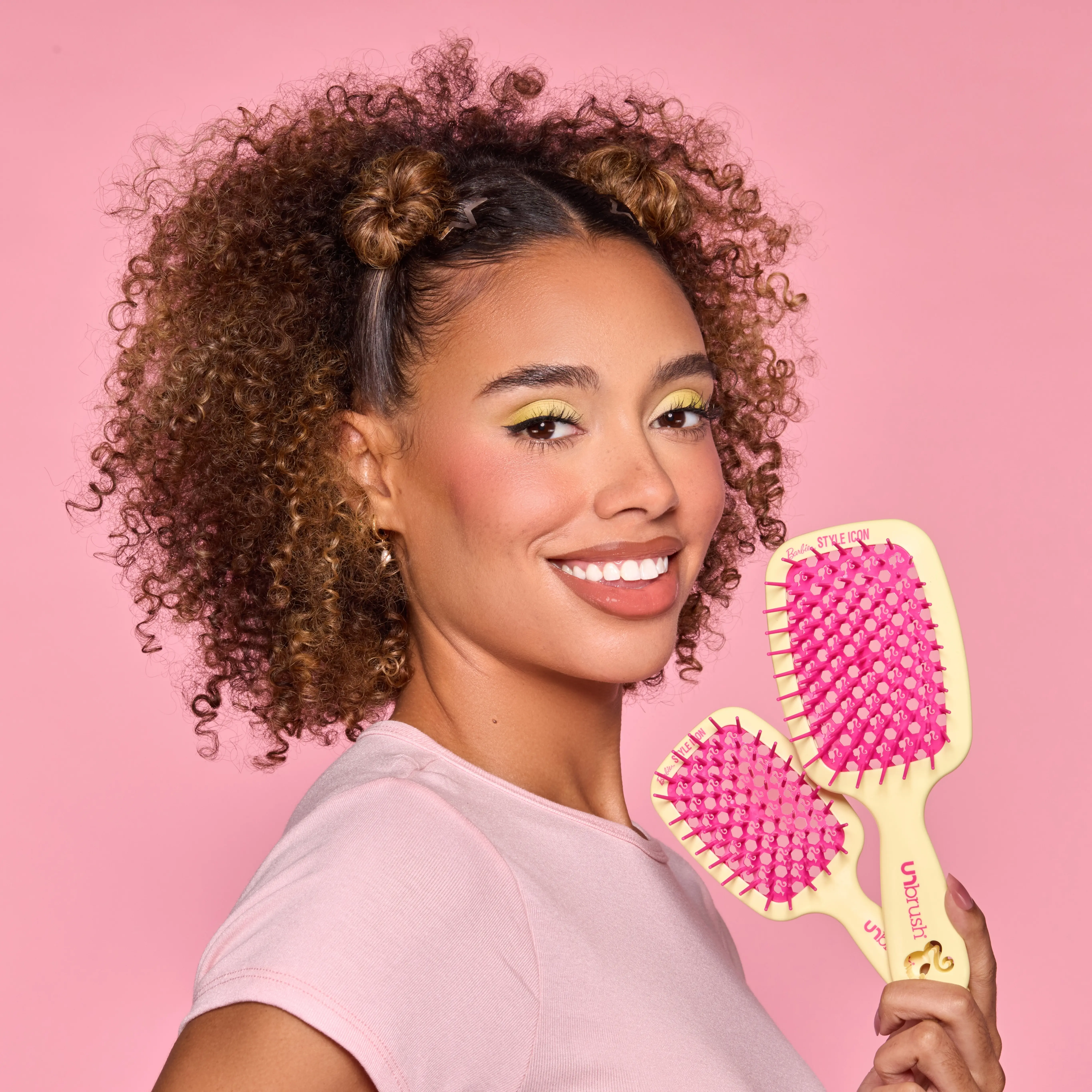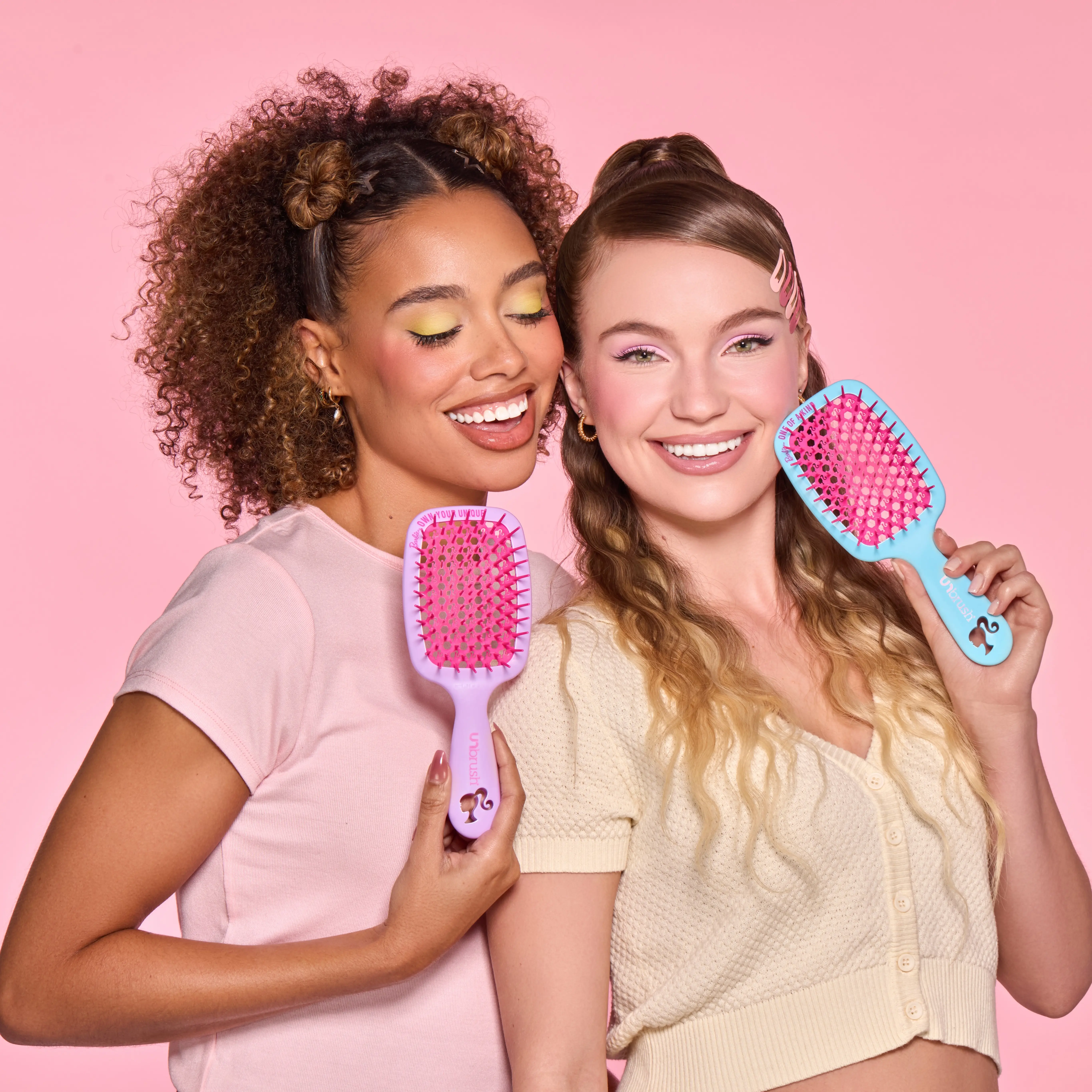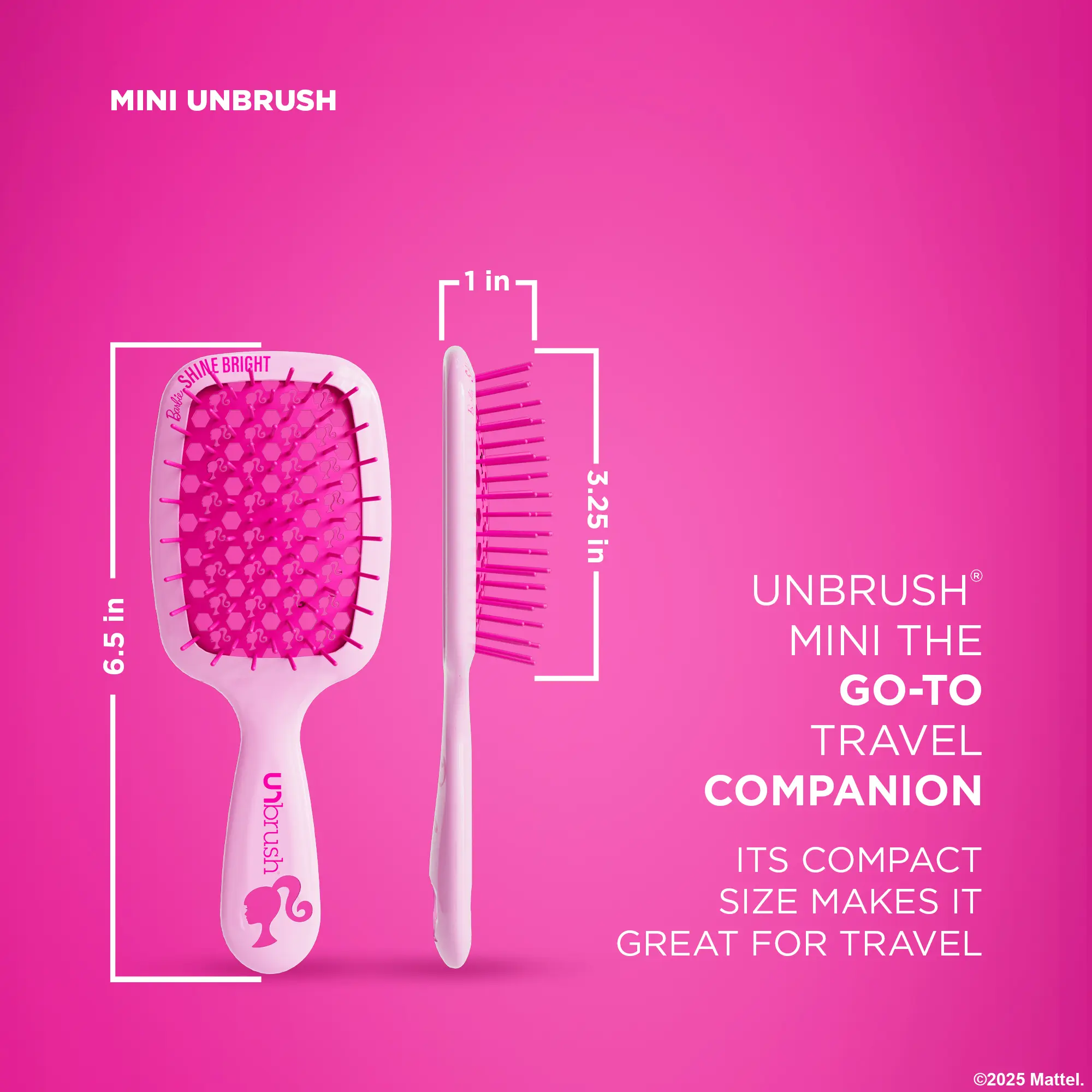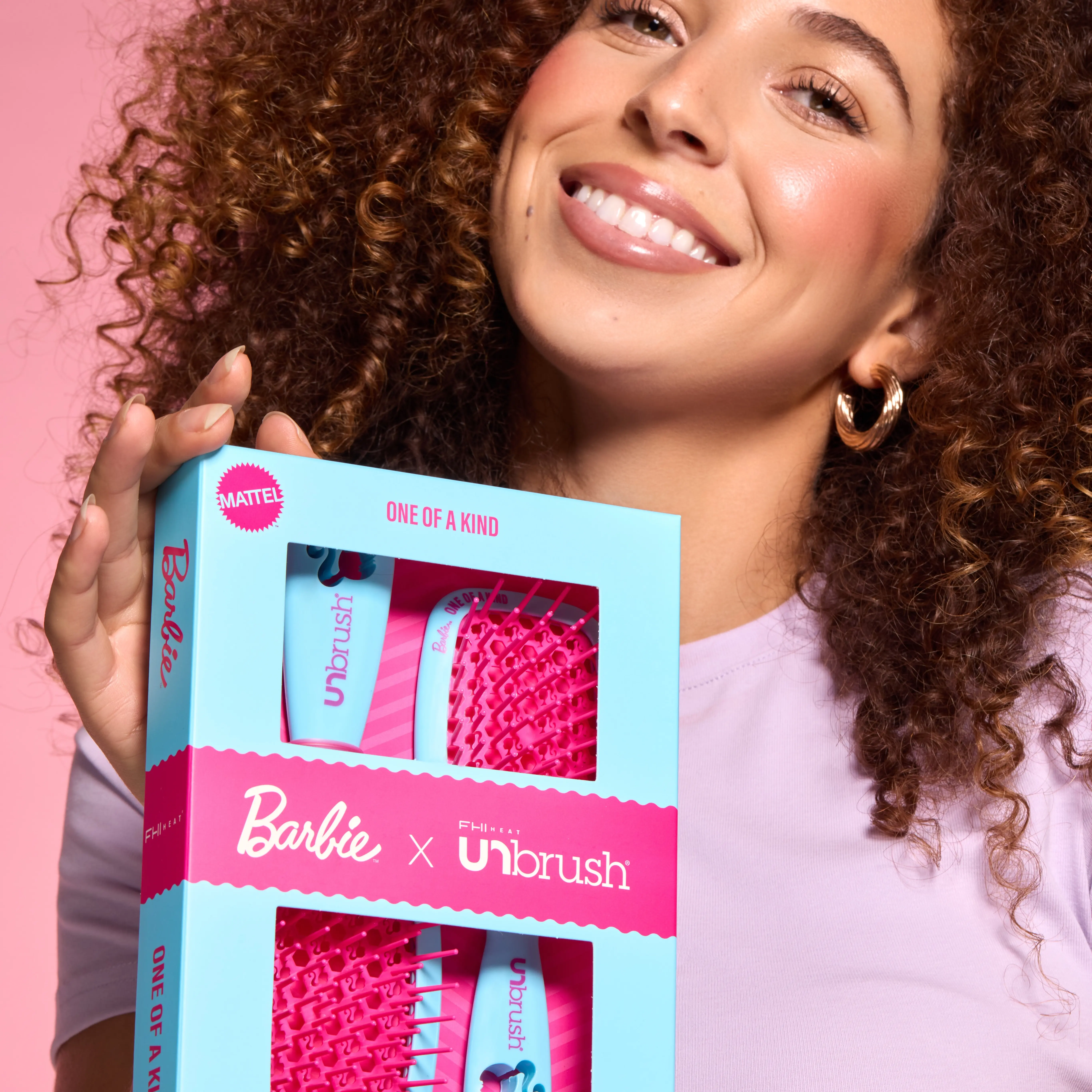 Love the detail of the Barbie and UNbrush collab "Be on of a kind" original and mini brush. Great for any Barbie lover! UNbrush doesn't pull hair like typical other brushes, and you can take it in the shower without worrying that it will not dry. Can use to blow dry hair too since it's vented.