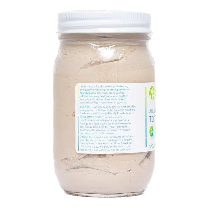 1.5 lb glass jar - Use this bulk jar to refill your 3 oz Uncle Harry's Toothpaste jars when they run low! Limit 4 per order.