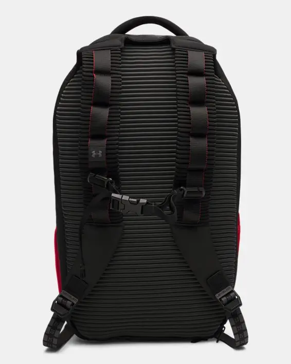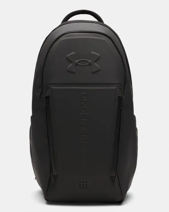 Water-resistant UA Storm technology keeps your essentials dry. LEVELED™ strap system guides you to assure straps are adjusted evenly for balanced weight distribution. New UA Suspension™ Straps with woven auxetic material evenly distribute weight to help lessen the load. Padded, vented back panel for breathable carry & large main compartment with separated shoe/laundry pocket. Media compartment holds up to 16" MacBook Pro® or similarly sized laptop with additional organization pockets. Expandable zipper increases front pocket storage space for days when you need to carry even more gear. 3 front zip pockets & 2 side water bottle pockets that fit up to 32 oz bottle. Uses a fluorine-free water repellent treatment.