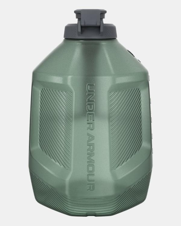 Leakproof 2-way cap with smooth spout design & wide mouth top so it's easy to clean & add ice or supplements. Air gaps on the bottom help reduce heat generation, keeping fluids cooler. Durable, semi-transparent outer body with molded exterior oz/ml markings for easy measuring. Soft molded handle with stainless steel pins for a secure & comfortable grip. Grips on the bottle make it easy to hold the body of the jug with just one hand. Impact-resistant base with flex channels for added durability. Customizable UA Locker Tag for your name or number, so you don't get your jug mixed up with teammates. BPA & lead free.