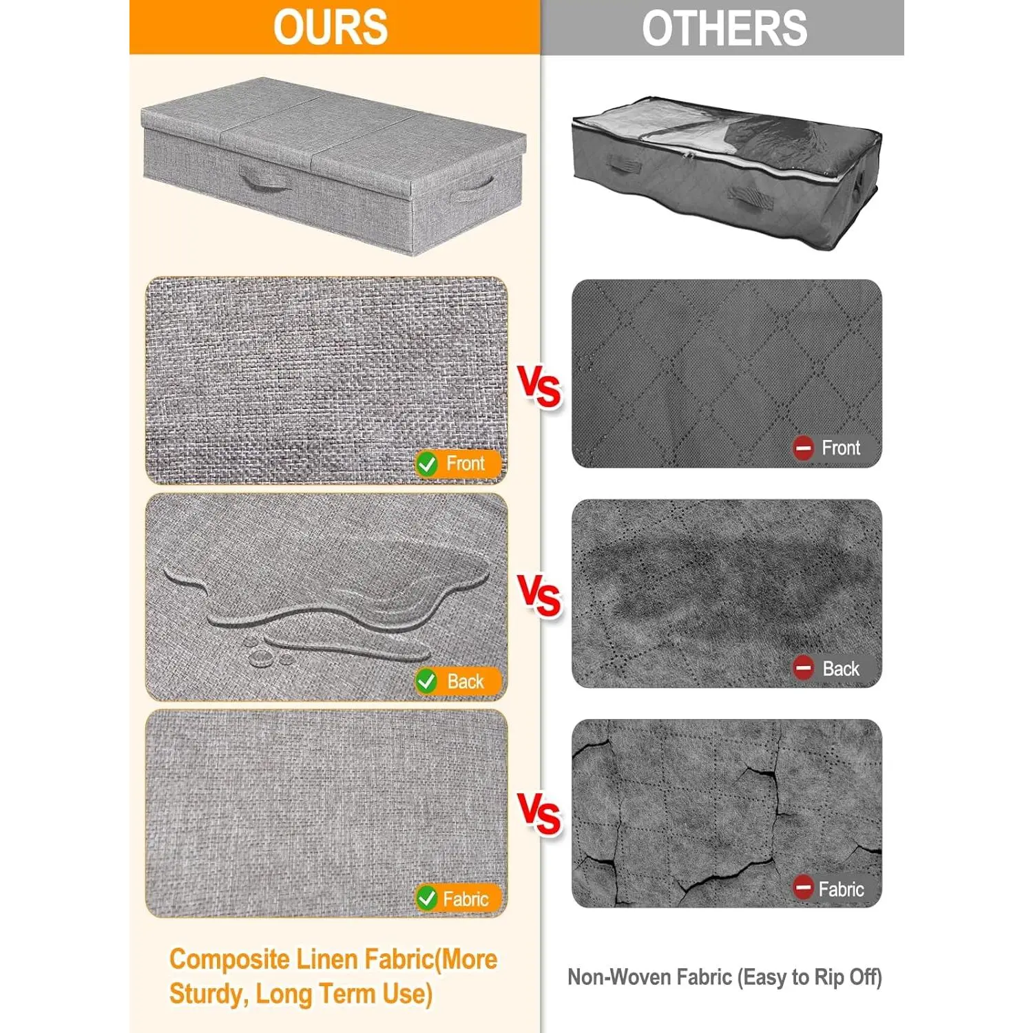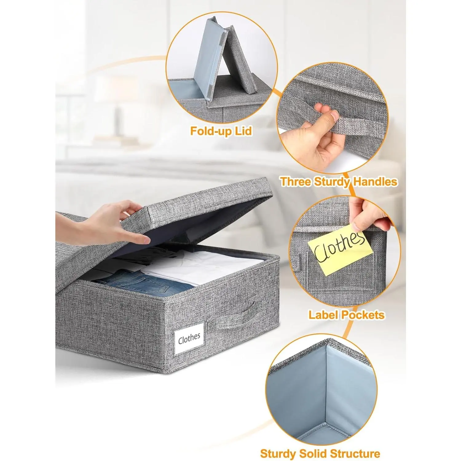 Essential Items for Dorm Room:The underbed storage containers are crafted from 3-layer fabric for long-lasting durability, and keep clothing from long-term storage. Portable foldable design suits college dorm life—an essential college for students. Wipe clean with a damp cloth for easy maintenance, and proof material protects stored items from damp in underbed/basement spaces. dorm storage for college students.