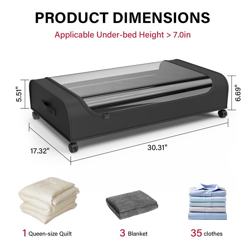 ·Clear Window & Label: Our rolling underbed storage bins are equipped with a Clear window, you can clearly see the stored items, say goodbye to the trouble of misplacing items. Additionly, the included label is great for labeling contents, allowing you to quickly identify and find the item you're looking for without having to open multiple containers or boxes