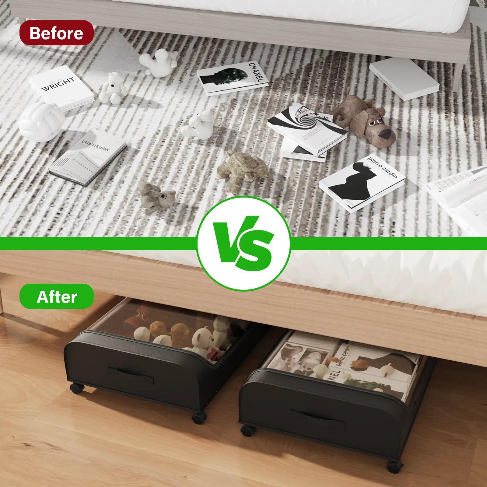 ·Hold Up to 66lbs: Yecaye under bed storage with wheels is made of high quality 300D PU fabric and sturdy metal frame, can hold up to 66 lbs, stronger than other fragile metal mesh, spacious capacity perfect for storing clothes, toys, books, shoes and other heavy items also won't compromise stability and durability