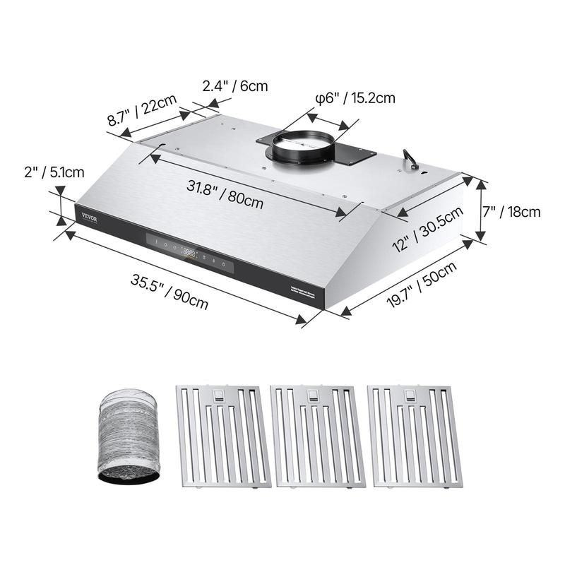 • Premium Stainless Steel: Crafted for durability and ease of maintenance, the vent hood features stainless steel. Its 3 detachable filters effectively capture grease and oil, and are dishwasher safe, making cleanup a breeze.