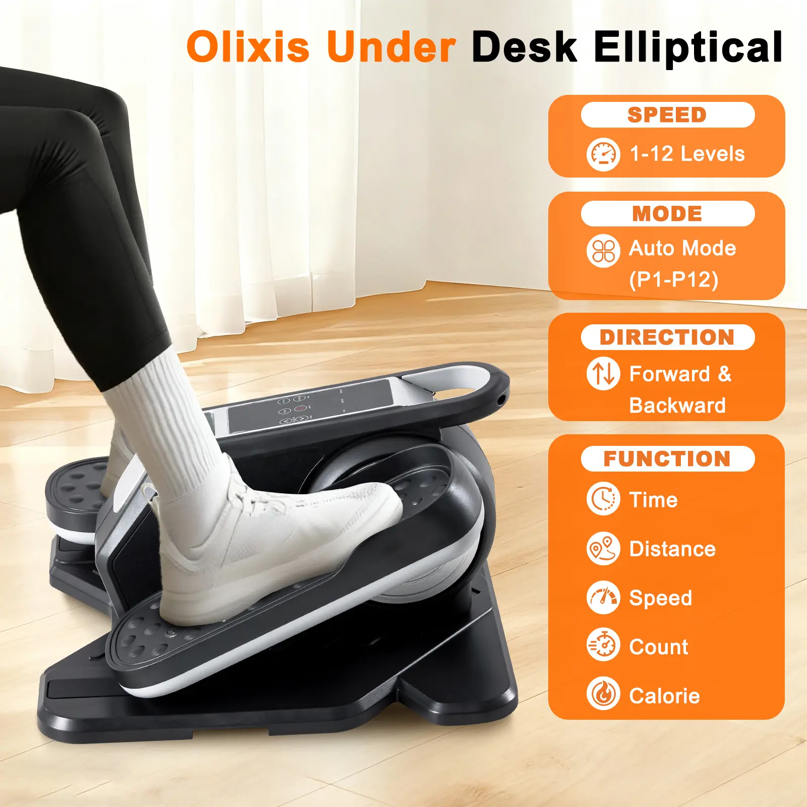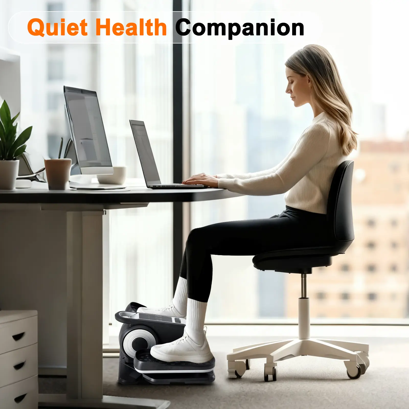 ·Compact & Portable Design: Lightweight and space-saving, this mini elliptical fits perfectly under your desk, allowing you to exercise your legs anytime at home or in the office without interrupting your work.