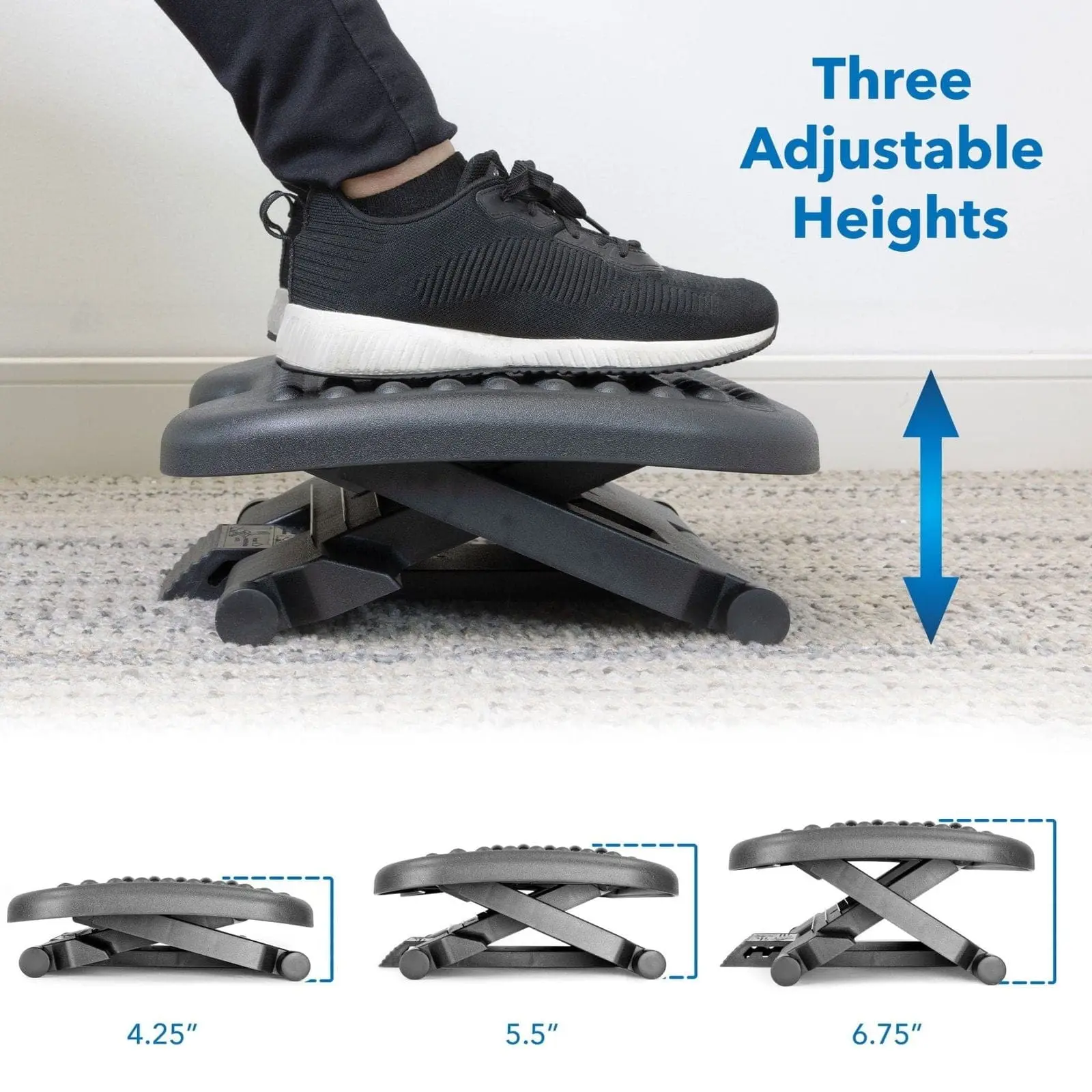 ·3-Level Adjustable Heights Elevate your legs to reduce fatigue and strain