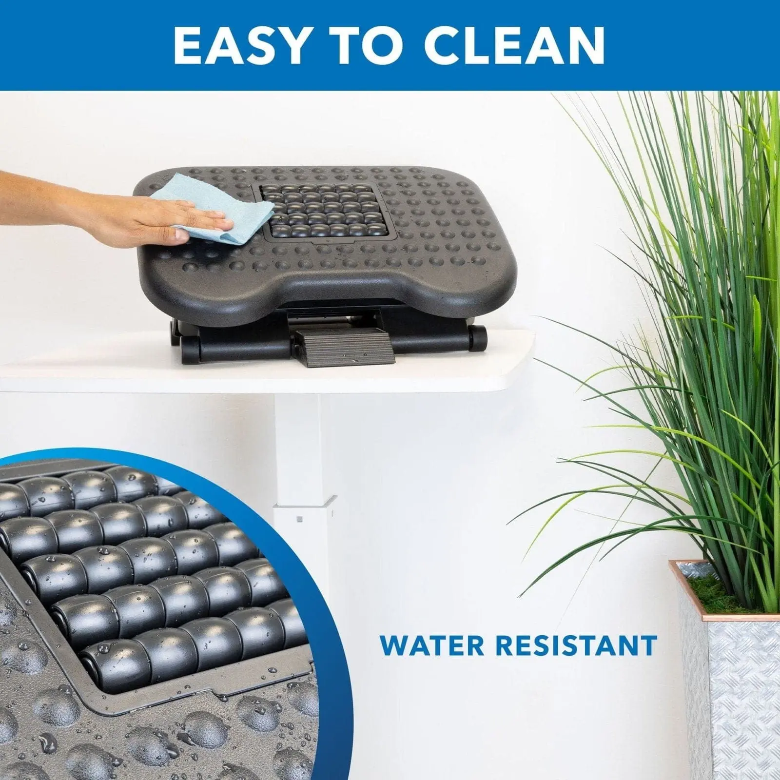 The MI-7809 under desk footrest will improve your comfort throughout the day. Elevate your legs and reduce fatigue and strain by relieving pressure from your lower back. Tilt the footrest to find the perfect angle. The rollers will help alleviate sore feet and improve circulation and alertness. The large, non-skid surface prevents your feet from slipping off while you're comfortably sitting. The low-profile unit takes up minimal space.