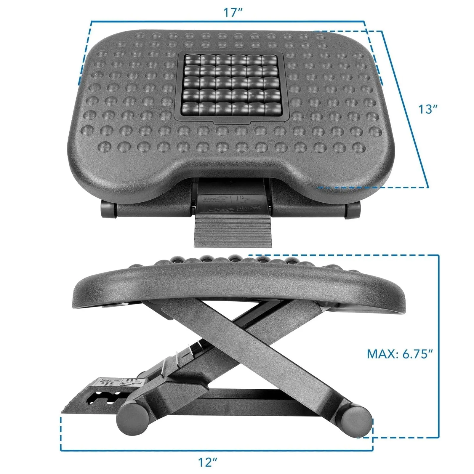 Under Desk Office Footrest with 3-Level Height Adjustment and Rolling Massaging Surface | 17 x 13 Inches