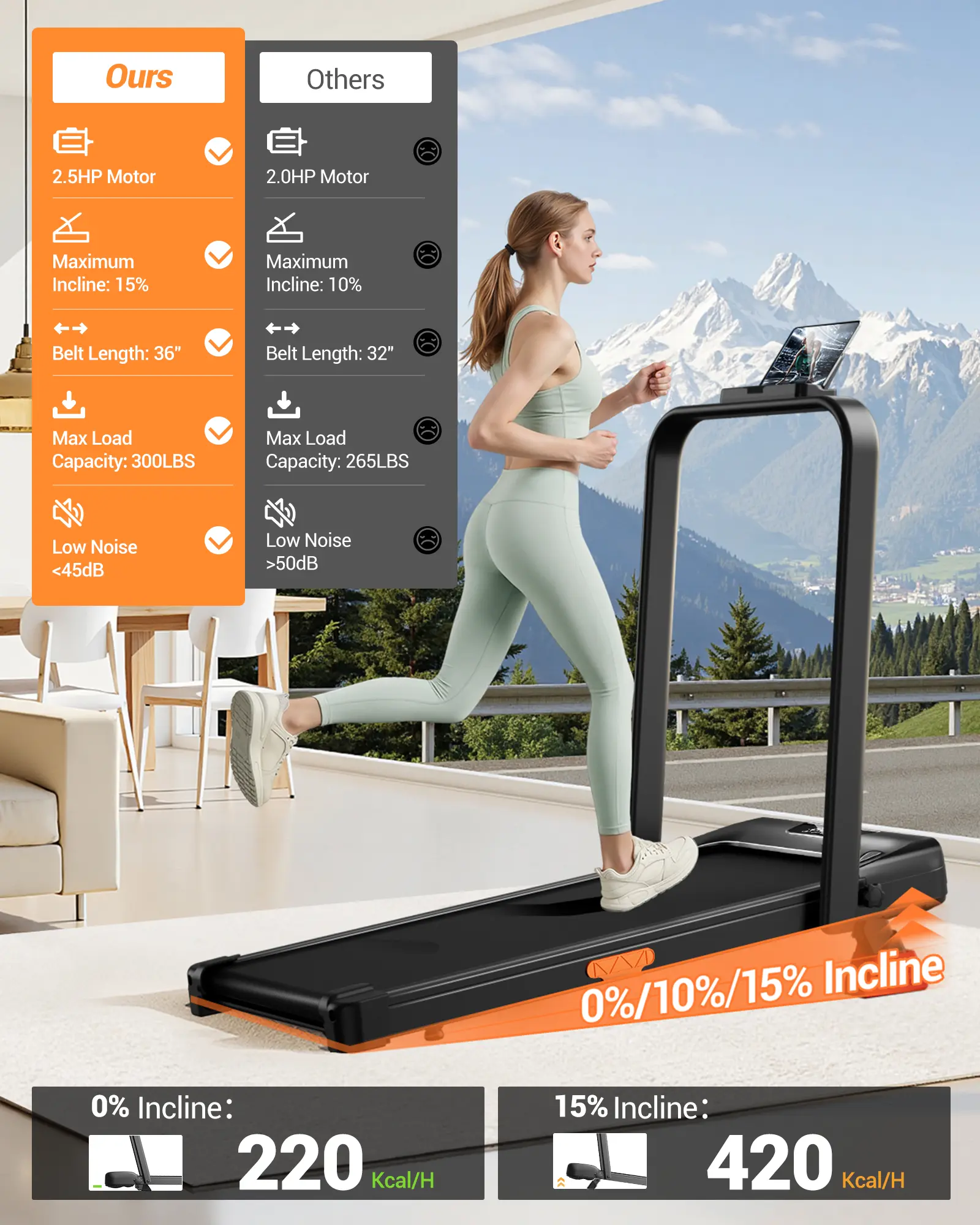 ·ULTRA-QUIET BRUSHLESS MOTOR: Our improved brushless motor with max 2.5 HP provides efficient, reliable, and low-maintenance operation while emitting only 40 dB of noise - ensuring your workouts won't disturb your downstairs or next-door neighbors while you walking jogging or running