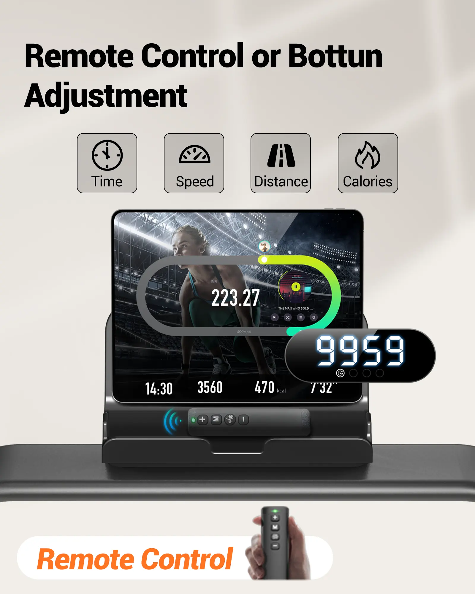 ·PORTABLE & MAGNETIC SLOT: The portable and compact design with wheels allows for easy storage under desks, sofas, or standing against the wall, saving you valuable space, and the back of the remote control is equipped with magnets, which can be attached to the treadmill to prevent loss when not in use.