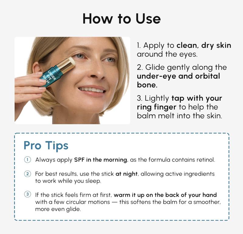 Powerful Ingredients—Our Eye Balm Stick features a powerful 7-in-1 Firmagen Complex, which combines superstar skincare ingredients like retinol, collagen, hyaluronic acid, ceramides, vitamins, and peptides to boost hydration and renewal in all skin layers. Alpha-arbutin in the formula also reduces dark circles and age spots, returning your skin to an even, glowing complexion.