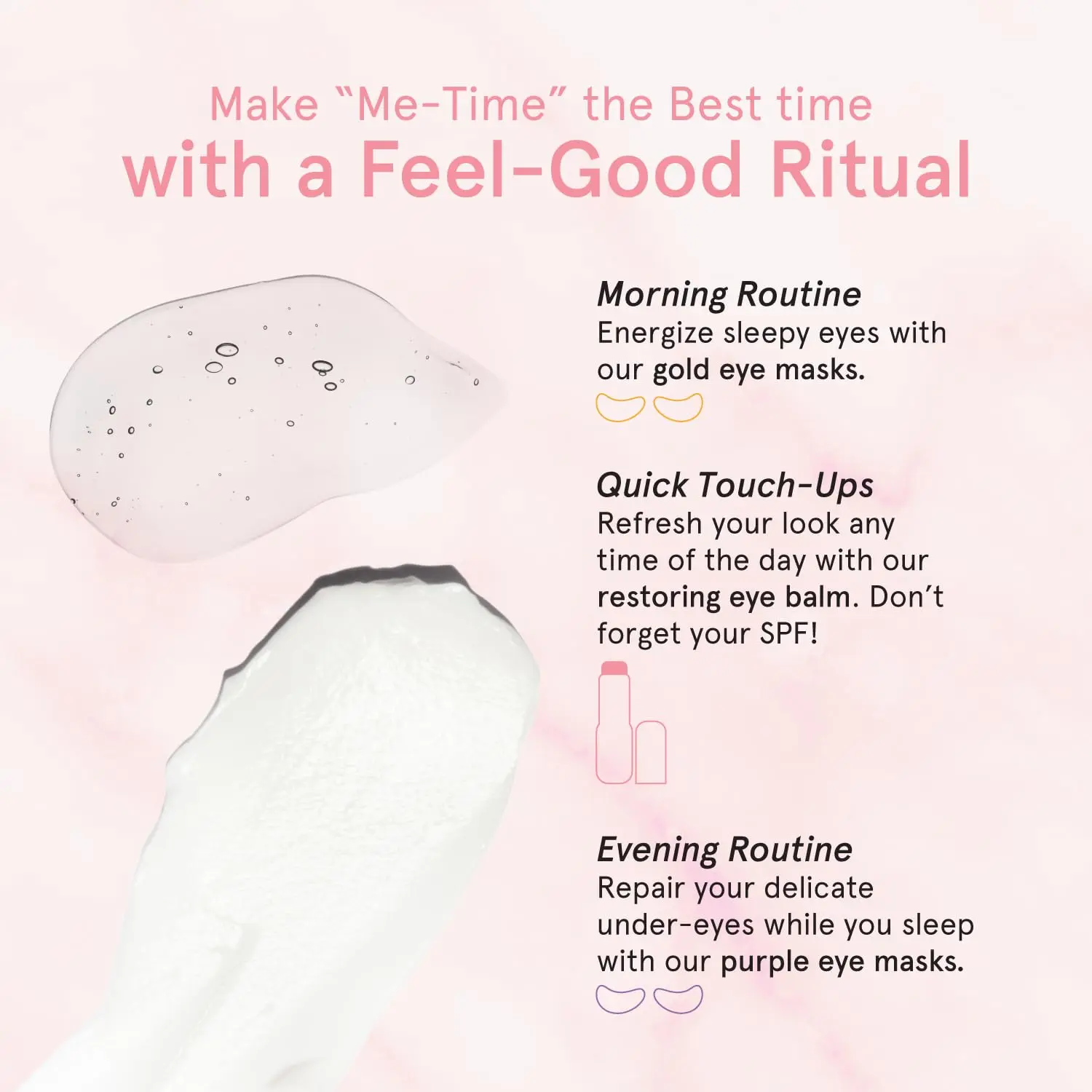 Product benefit: Helps clear dark circles, adds life to your eye all around, texture is very soft once patted.