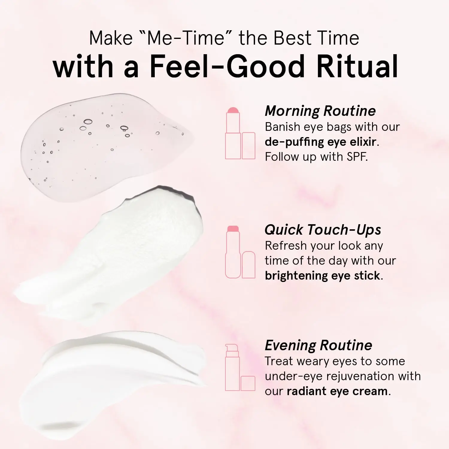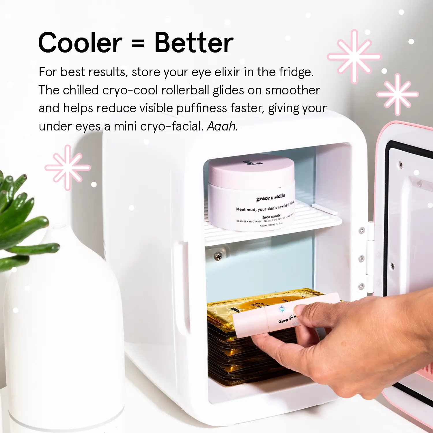 Late nights, early mornings, or just too much screen time? Our de-puffing eye elixir uses a cooling rollerball and powerful ingredients to wake up tired eyes, smooth fine lines, and banish puffiness—no sleep needed! 👀💖