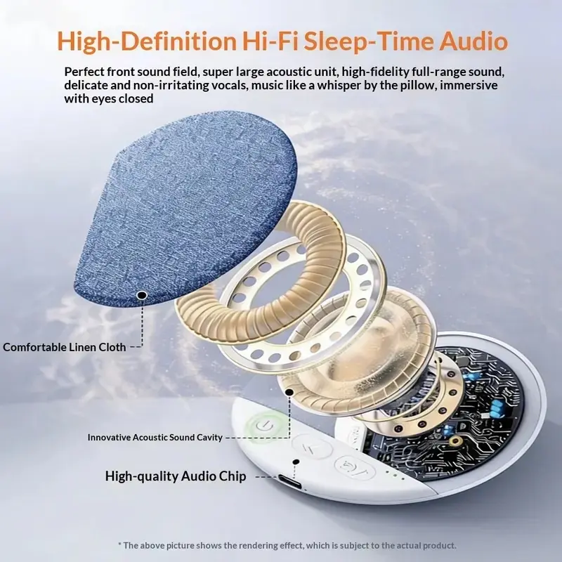 The ultra-thin speaker placed beneath the pillow is a portable audio device specially designed to enhance the sleep experience. It is made of medical-grade silicone or flexible materials, ensuring that there is no pressure on the neck when turning over. By placing the speaker under the pillow, the sound waves are evenly transmitted through the pillow fibers, creating an immersive auditory effect similar to "bone conduction". This makes white noise, light music, or sleep-inducing audio seem to naturally emerge from the brain, effectively masking environmental noise and helping the brain quickly enter a relaxed state. Some products offer functions such as timed playback and intelligent sound effect adjustment, allowing for personalized sleep aid plans based on individual preferences. Compared to traditional bedside speakers, the ultra-thin design saves space, aligns with modern minimalist home styles, and avoids the discomfort caused by direct sound hitting the ears. Technically, it achieves wide-band sound field coverage with clear sound quality and low distortion. It is suitable for people who have long suffered from insomnia and are sensitive to sleep environments.