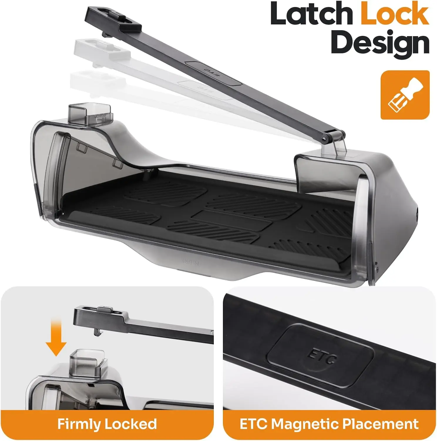 ·【Easy Installation】No drilling or other tools required, only takes a few seconds. Easy and effortless! Unlike magnetic installation, our under screen storage compartment for Model 3/Y utilizes a latch lock design, fits securely, which can effectively prevent it from moving even when braking suddenly.