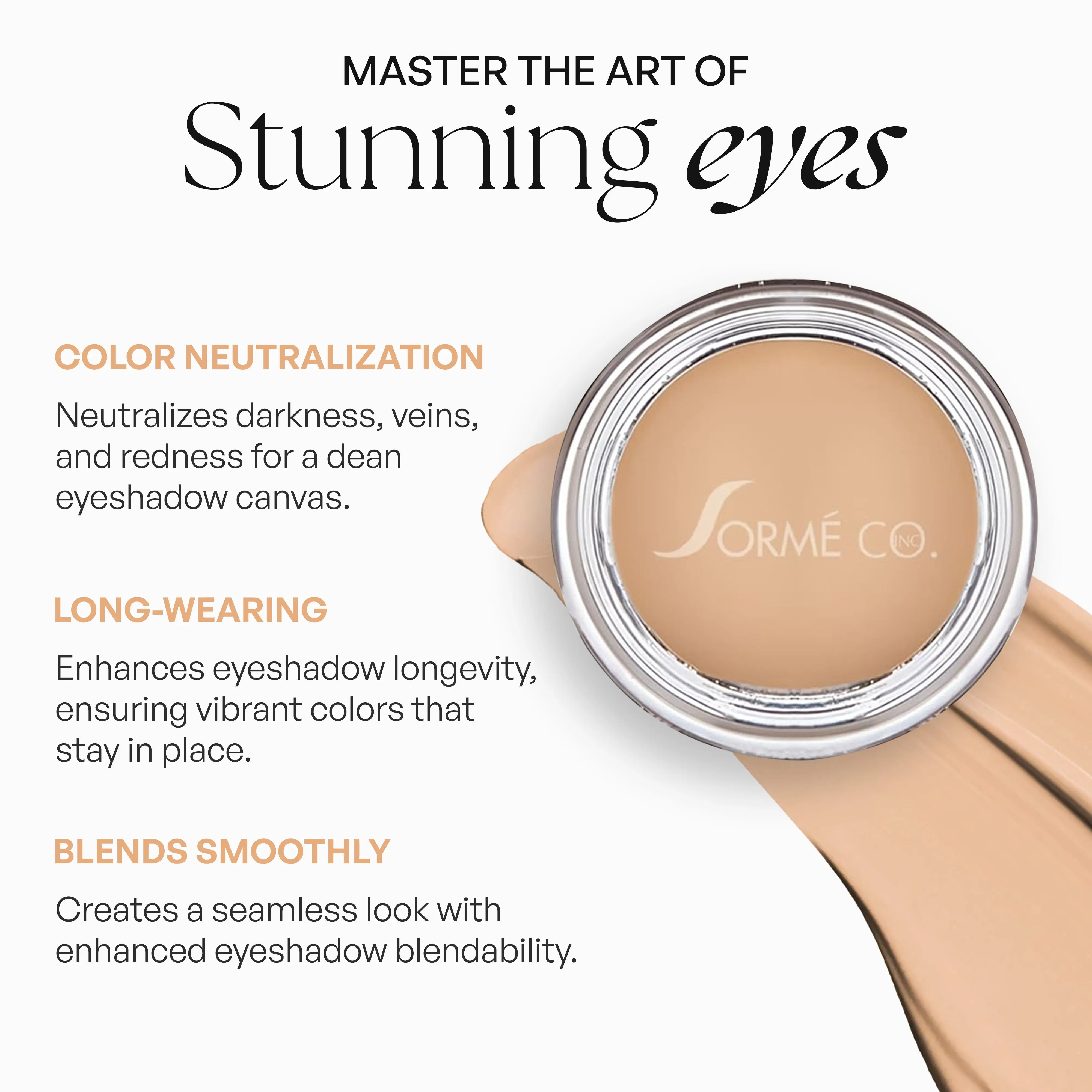 Ready to make every eye look pop? The Sorme Under-Shadow Base neutralizes redness, dark circles, and veins, creating a silky, matte canvas. It makes eyeshadows look richer and truer. Its cream-to-matte primer formula extends wear, improves blendability, and locks in shadow color—no creasing or fading here. Bold, budge-proof eye looks just went TikTok-ready.