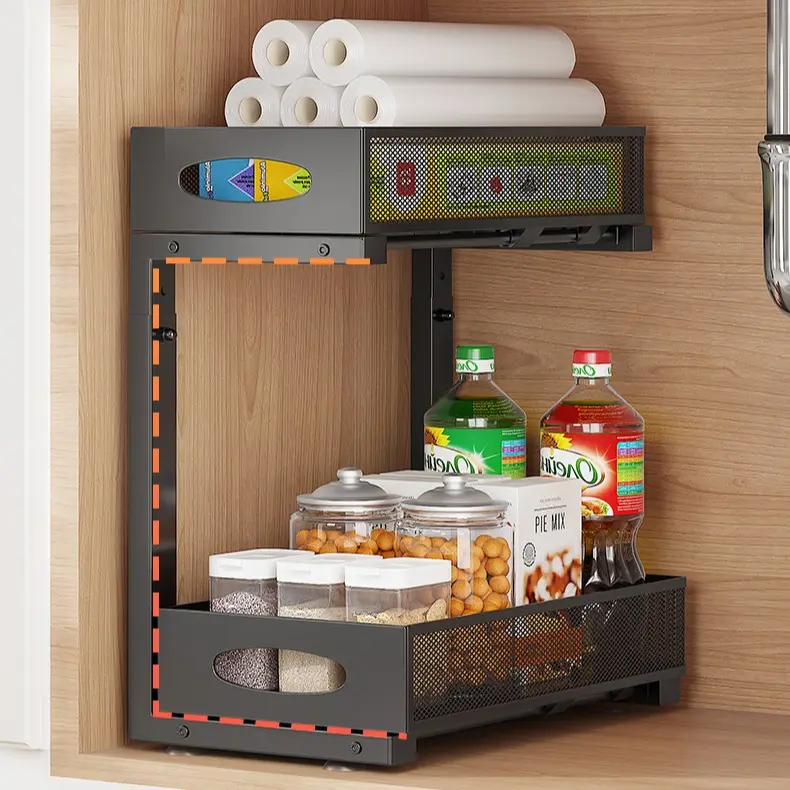 5. 2 Pack Under Sink Organizer,Adjustable Height,2 Tier Pull Out Under Cabinet Organizer,Slide Out Thickened Metal Under Sink Storage for Kitchen Bathroom Laundry Cabinet Pantry,White,black Shelf Rack Racks
