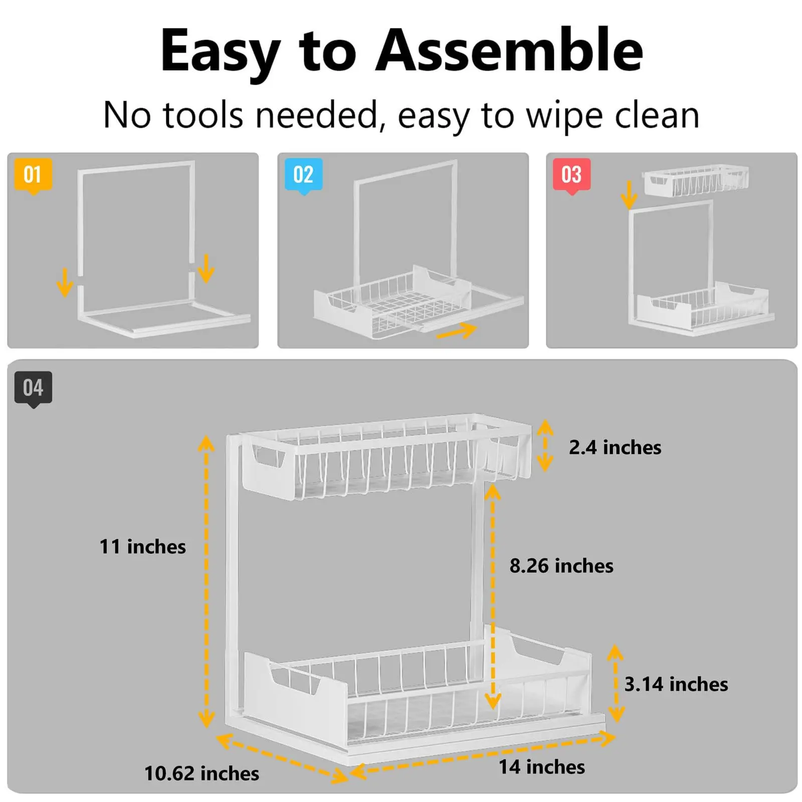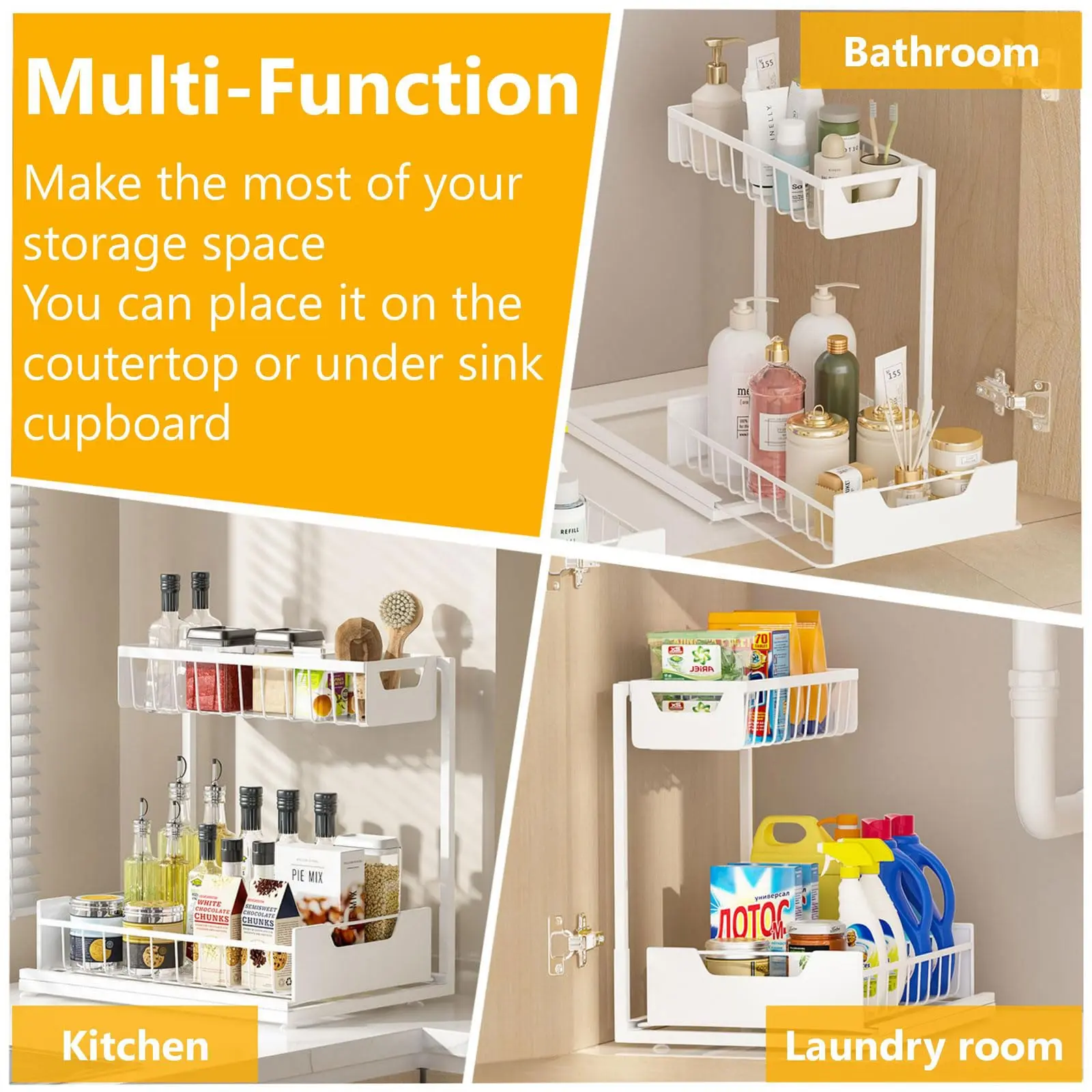 ·Versatile: Pull out cabinet organizer can be used under a kitchen or bathroom sink, you can also put it on the counter