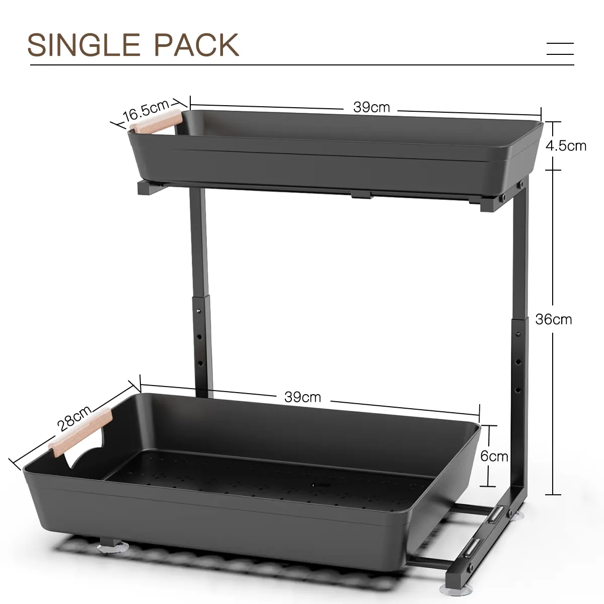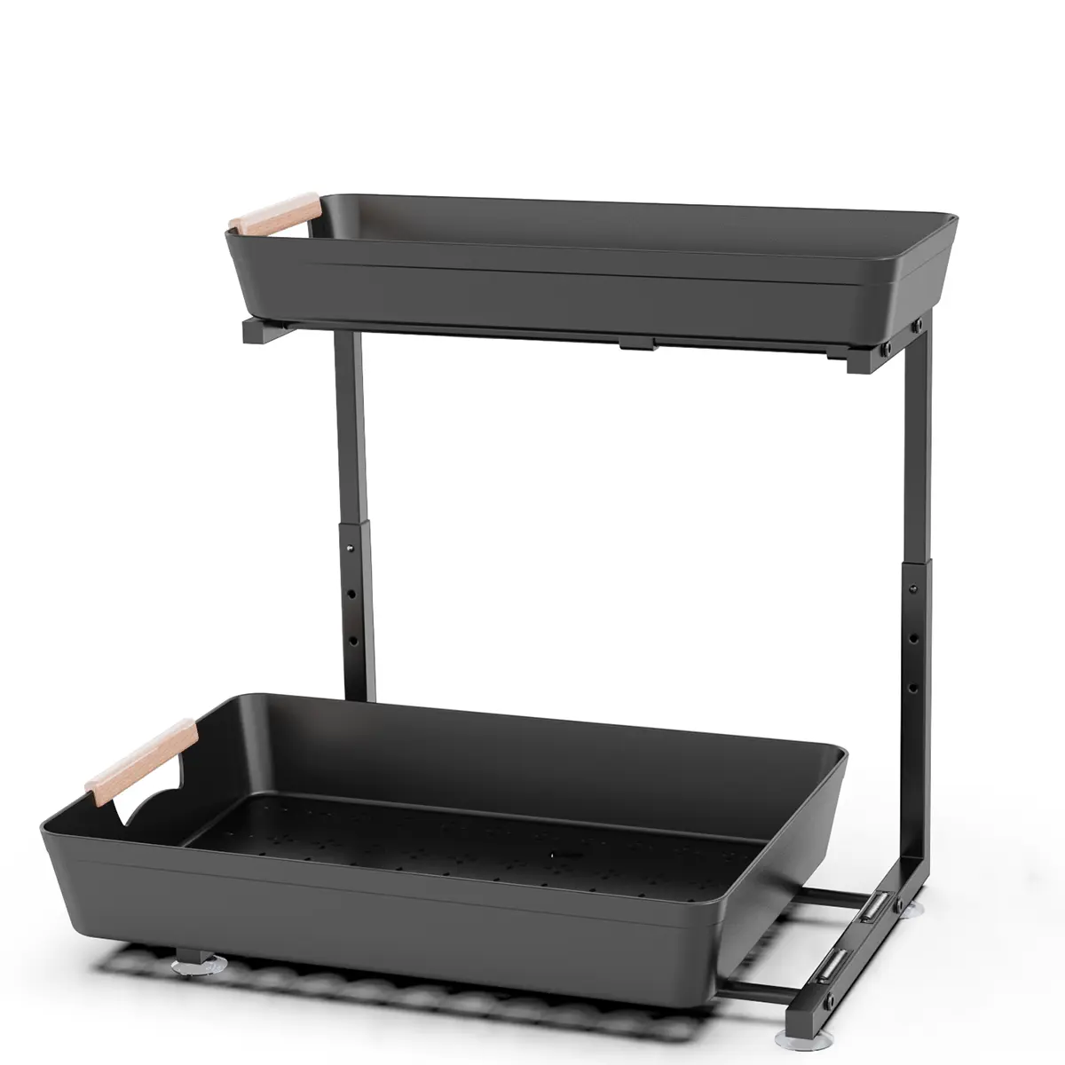 ·【Suction Cups & Stability】 Our cabinet pull-out drawers come with four suction cups. These suction cups, combined with adhesive tape, help secure the drawer in place, preventing it from sliding or scratching, and making the under-sink storage rack more stable.