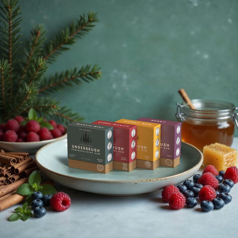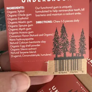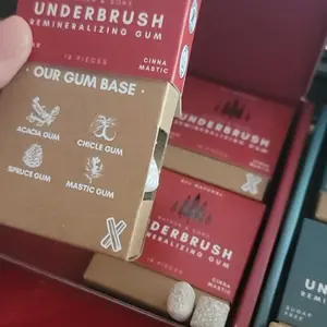 Experience the ultimate in oral care with UNDERBRUSH Remineralizing Chewing Gum! This chewing gum is the perfect blend of natural ingredients and effective mouth care.