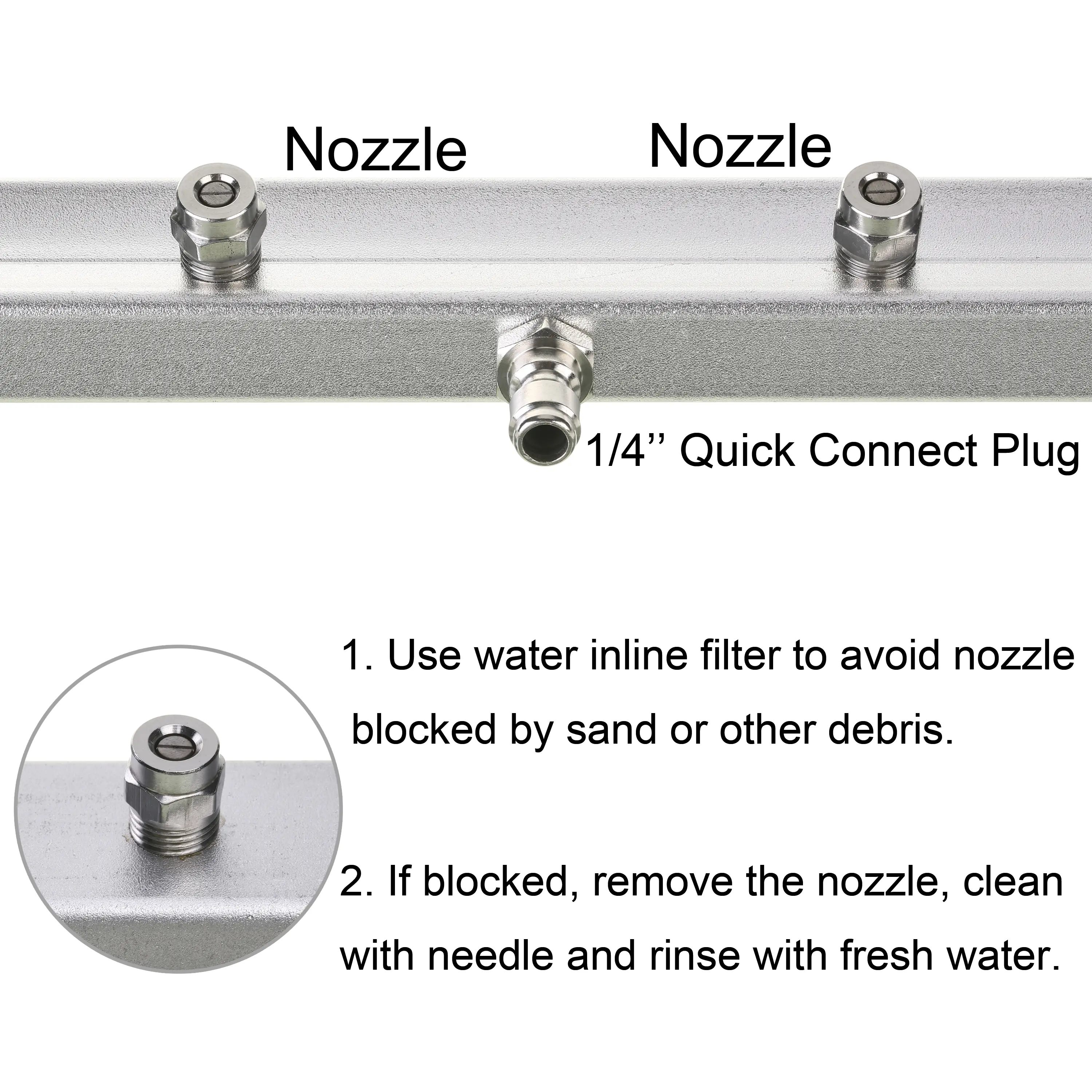 ·Fitting: 1/4" male plug for quick disconnect. Easy to connect and release. Attach swivel wheels between the sump cleaner and spray bar to make your job easier and faster.