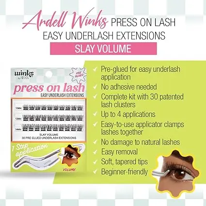 Meet the perfect lazy girl lashes… Free yourself from the mess & mistakes of lash glue with Winks Press On Lash Easy Underlash Extensions! These 1-step extensions are conveniently pre-glued to make them super easy to put on without additional adhesive. Minimal effort for maximum cuteness. No time gluing means more time doing all the fun, creative things you love! Pre-glued for easy underlash application; No adhesive needed; Complete kit with 30 patented lash clusters