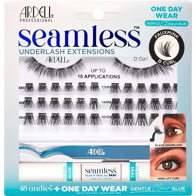Ardell Seamless Faux Mink D- Curl Underlash Extensions Kit • High-Lift D-Curl: Faux Mink D-Curl lashes deliver dramatic lift and eye-catching wow. Their stunning curve creates a lifted, bigger, and brighter gaze with added definition.