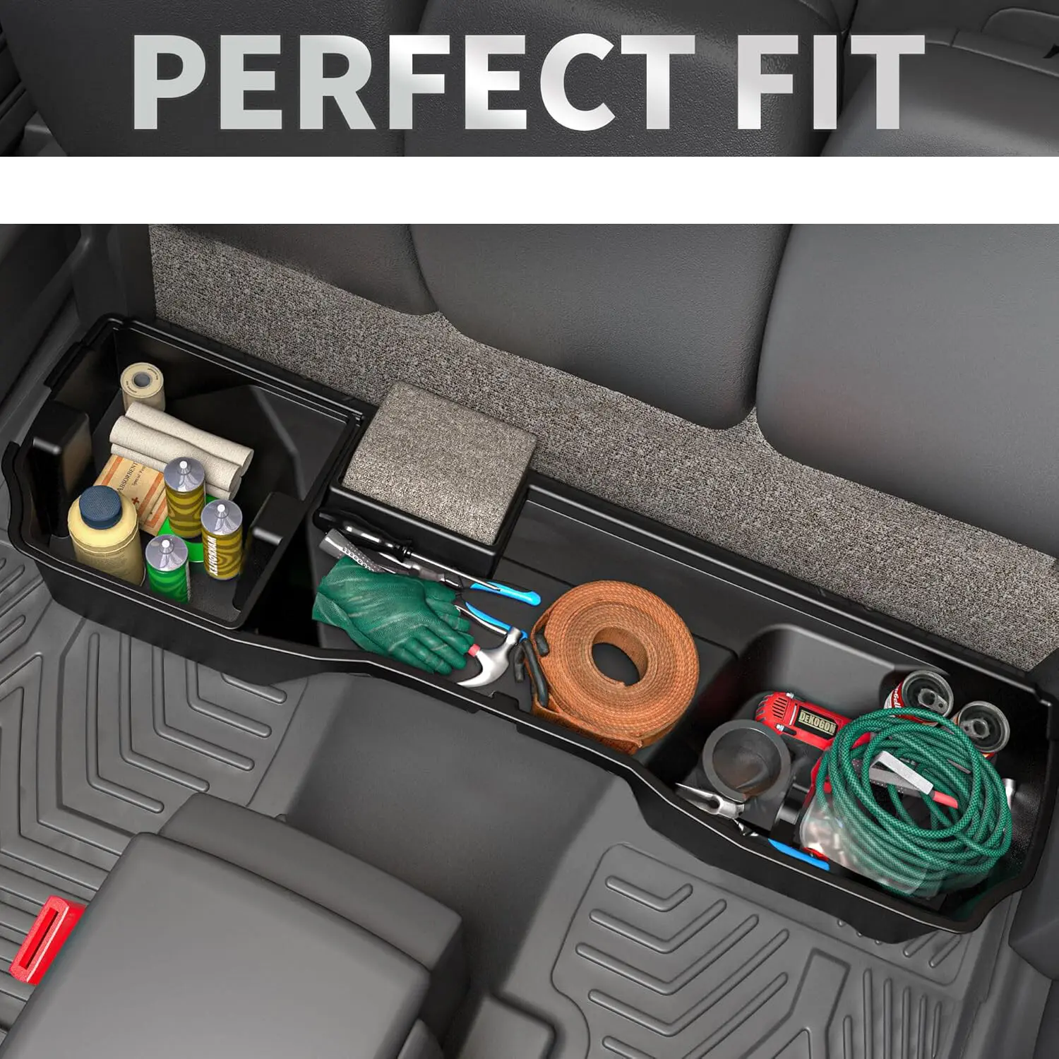 Simply install under the seats for quick access. Fits perfectly on 2014-2018 Chevrolet Silverado/GMC Sierra 1500 Double Cab (2019 Silverado LD/Sierra Limited ONLY)/2015-2018 Silverado/Sierra 2500 3500 HD vehicles. Stay organized on the go!