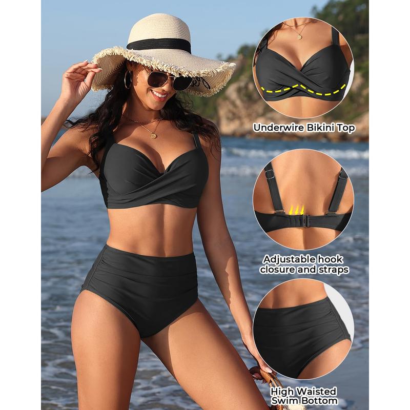 ·Two-Piece Swimsuit for Women: This bikini set combines a sweetheart neckline and twist-front underwire bikini top with a fully lined bottom. Made from high-quality fabric, it offers both style and comfort for a perfect fit.