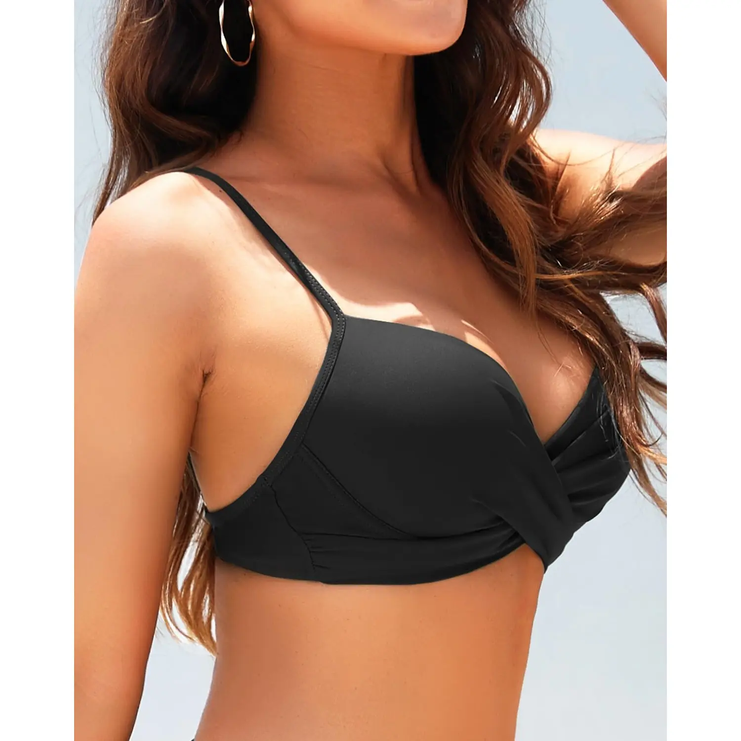 ·Bra Style Swim Top: The crisscross twist front swim tops feature a V-neck design with adjustable spaghetti straps.