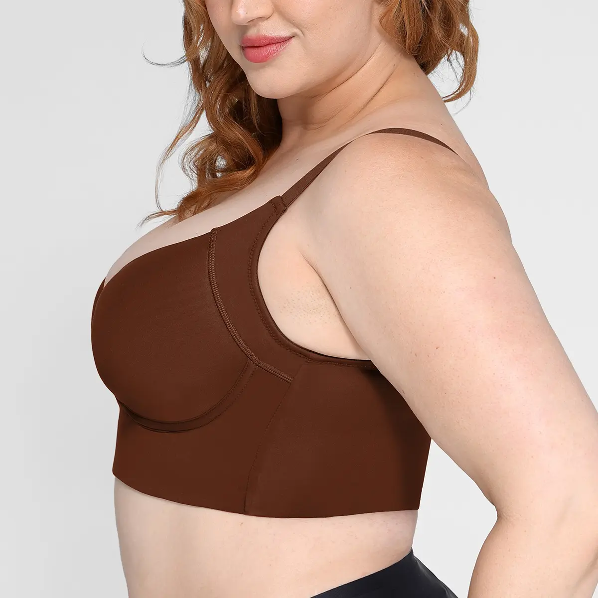 ⢠One-piece underwire compression bra cup fits the breast shape better.