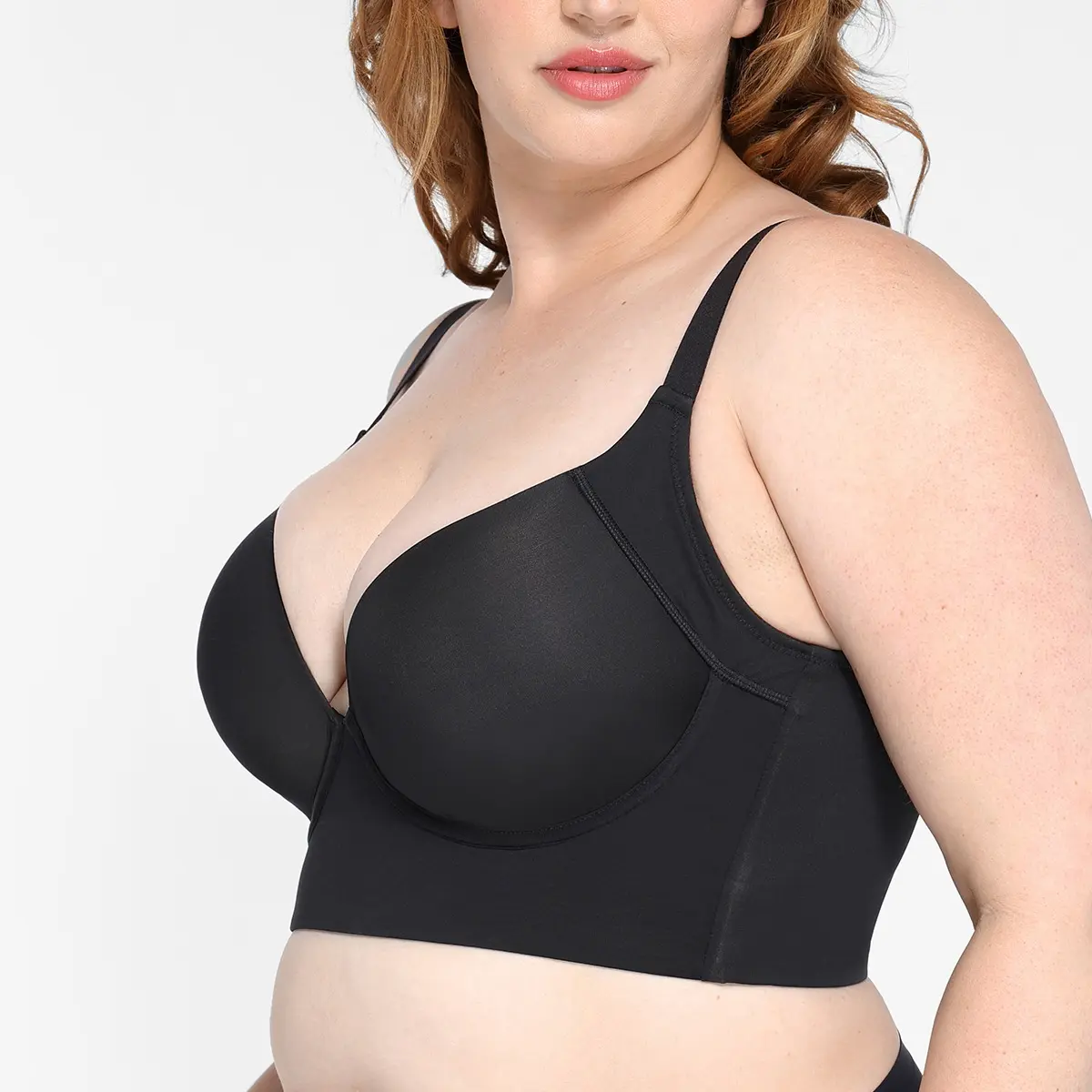 ⢠3/4 cup bra styling accommodate most bust sizes and highlight the curve of the breast.