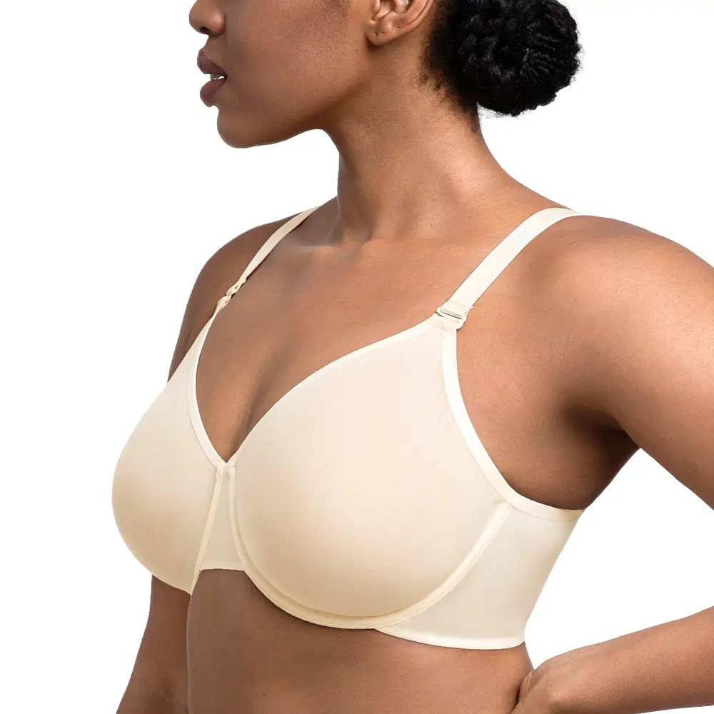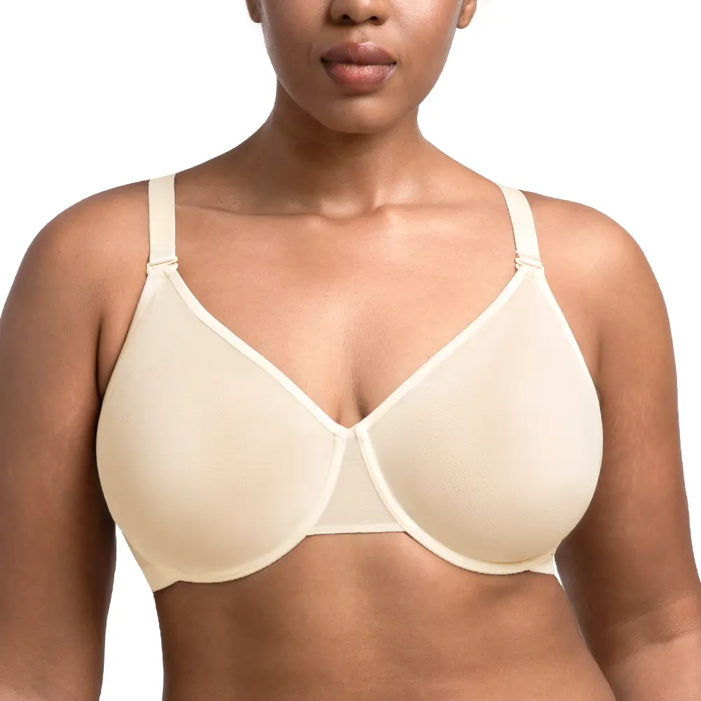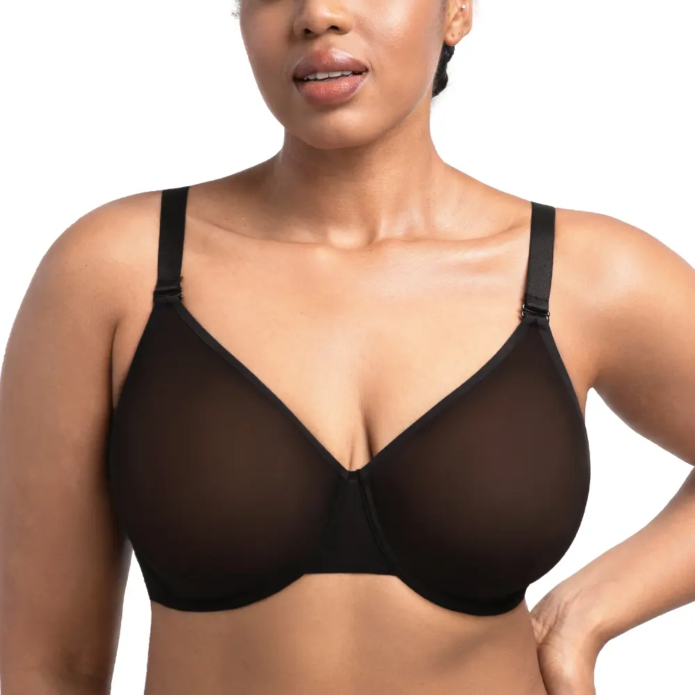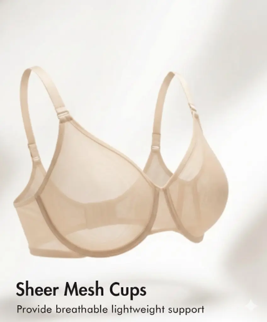 We’ve redesigned the classic full-coverage bra with a modern, whisper-light sheer mesh that celebrates your natural shape. It’s breathable, beautiful, and built to support even the fullest busts—minimalist style with maximum function.