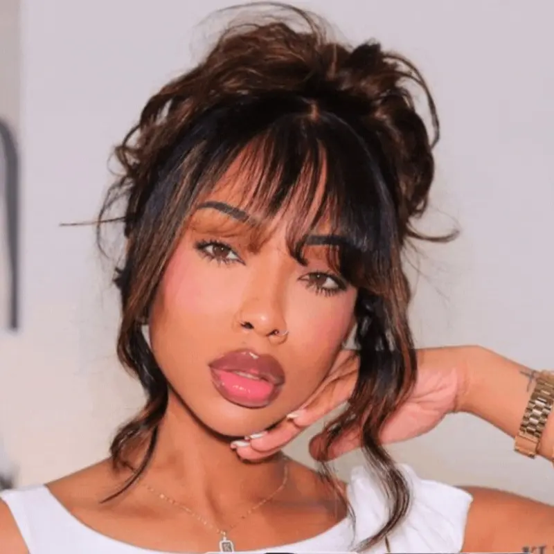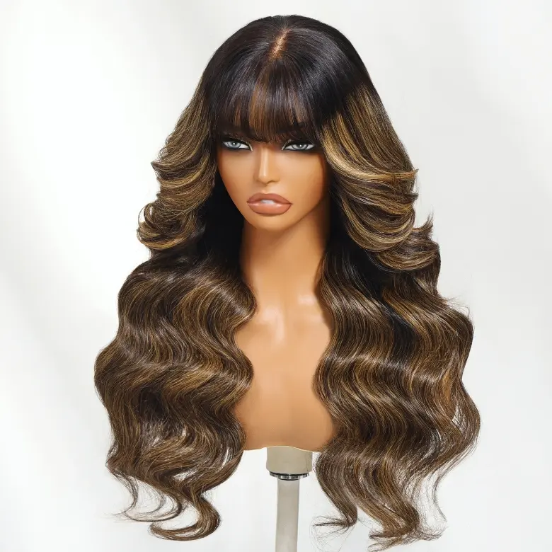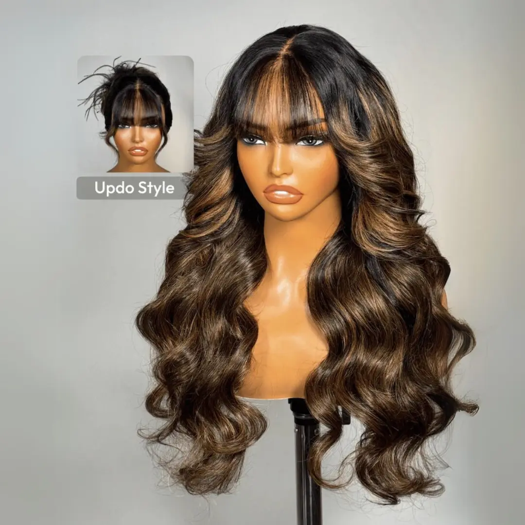5. 【NEW IN】UNice Pre-Everything Balayage Highlight Fluffy Loose Wave Curtain Bangs Wig Glueless 13x4 Lace Frontal Human Hair Wigs with Upgraded Drawstring