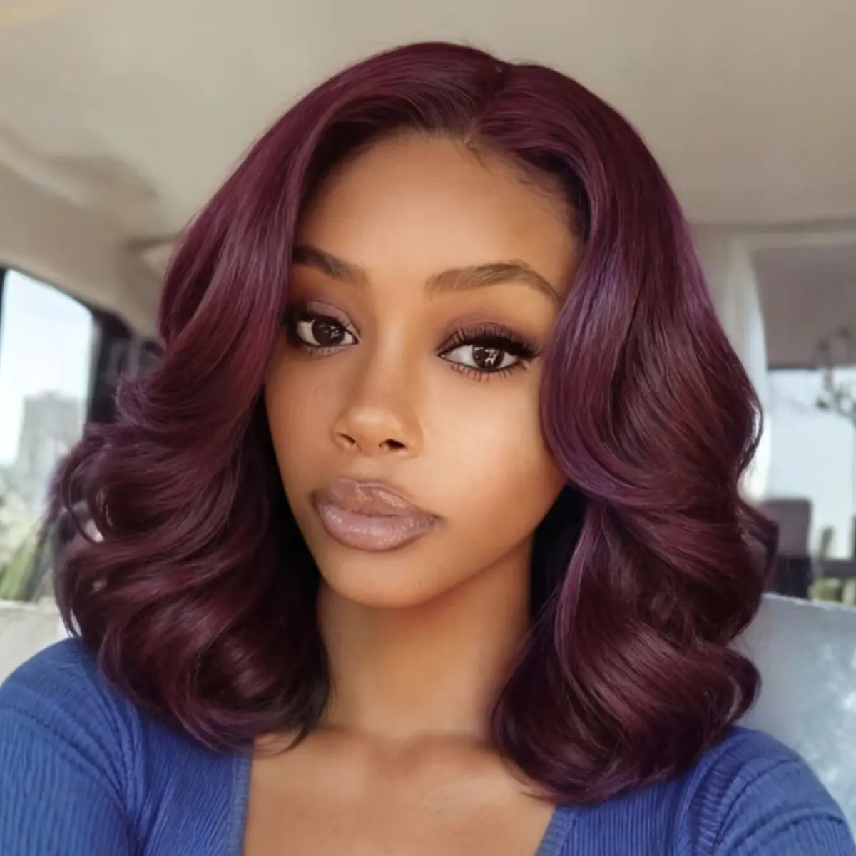 The color is exactly like the pictures — that deep black cherry purple ☺️shows beautifully in natural light and indoors. The lace came pre-plucked, super easy to install, and completely glueless just like advertised. The hair is soft, holds curls all day, and doesn’t shed a lot.