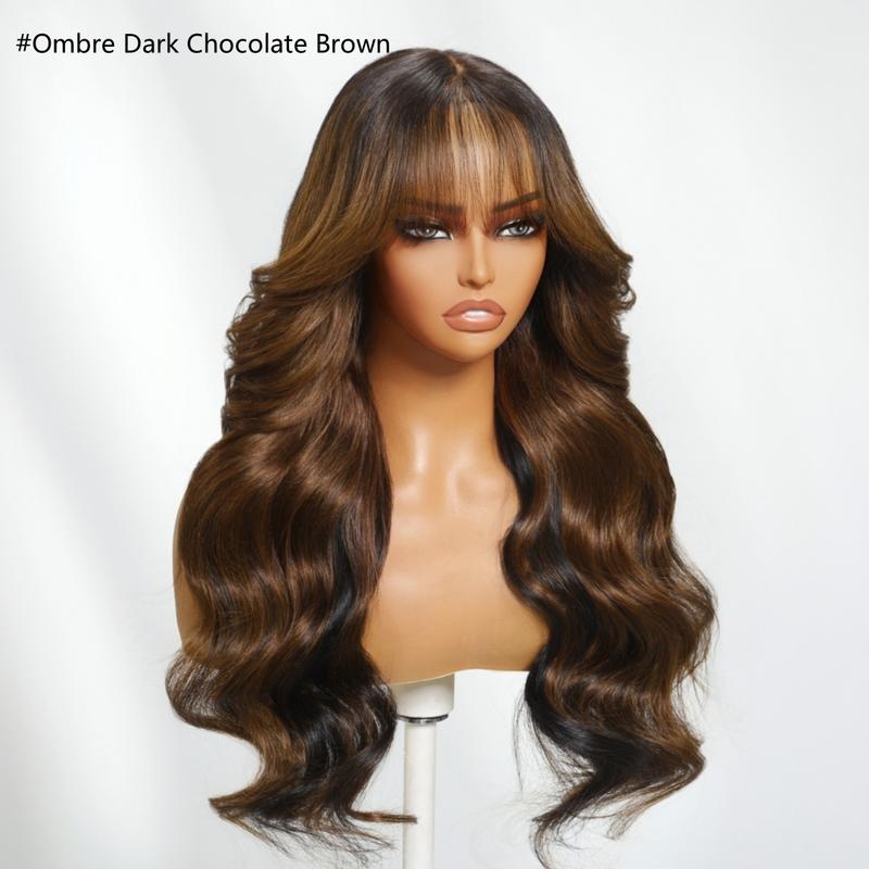 UNice Ombre Dark Brown Loose Wave Wig with Bangs 13x4 HD Lace Front Human Hair Wigs Natural Scalp Beginners Friendly